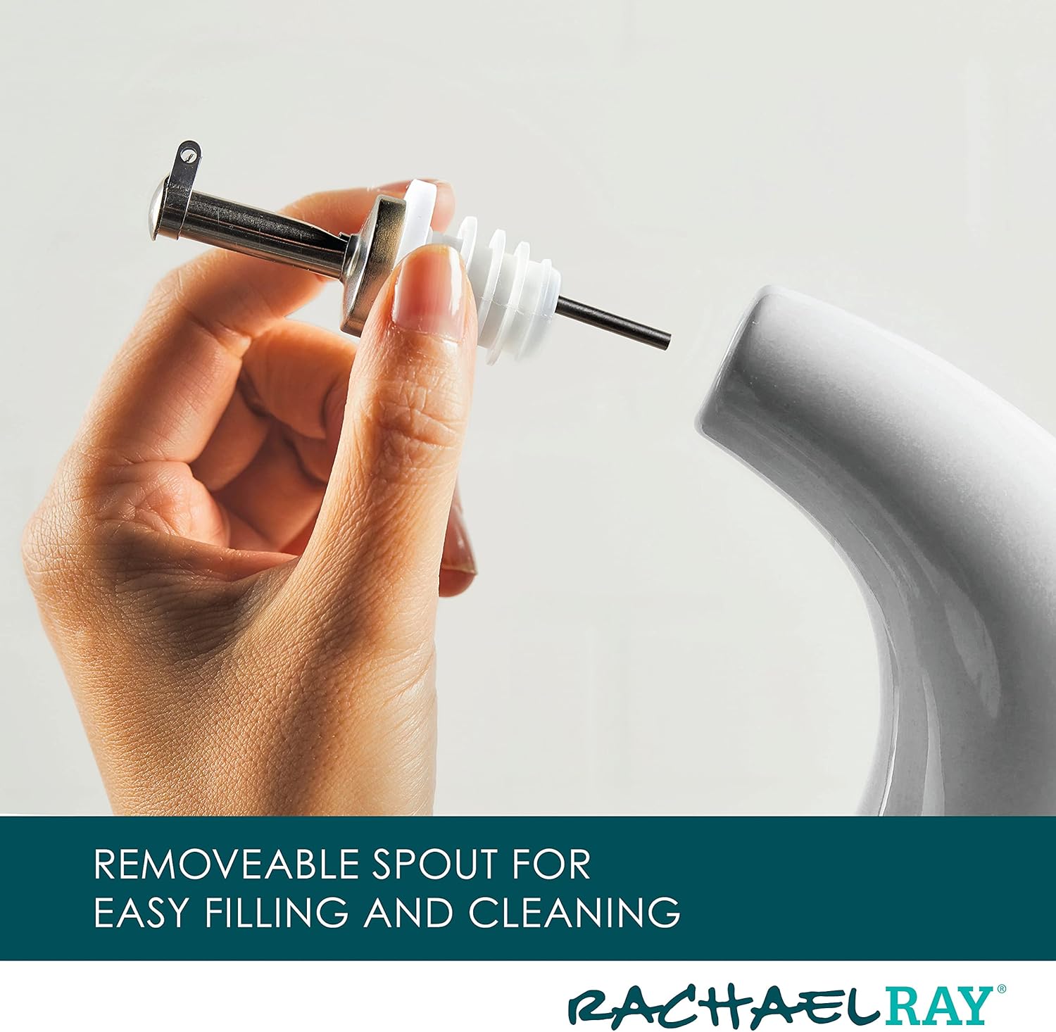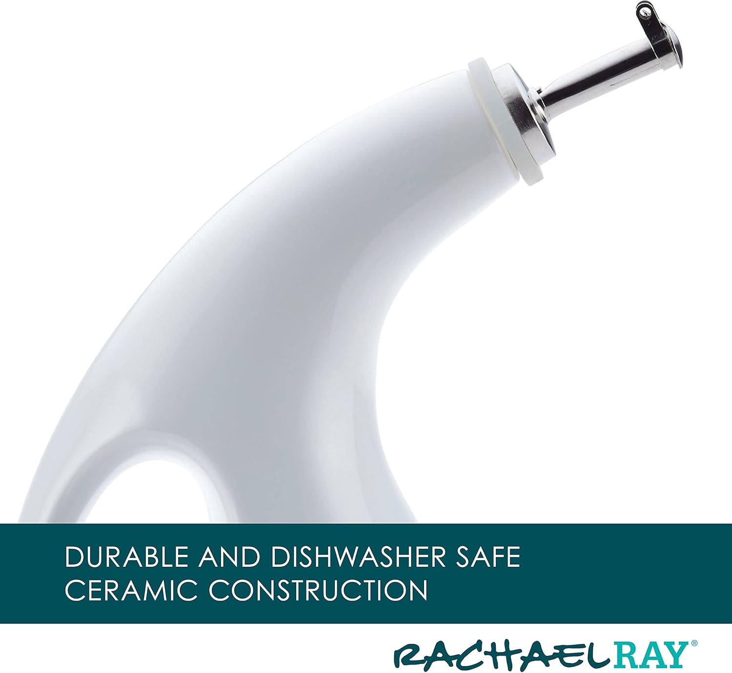 Rachael Ray Ceramic EVOO Oil and Vinegar Dispensing Bottle with Spout, 24 Ounce, White