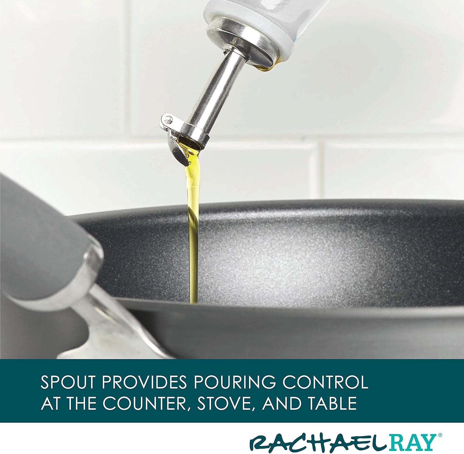 - PRECISION POUR: Rachael Ray EVOO bottle is ideal for use as a cruet and salad dressing duspenser and features unique spout designed for perfect pouring of oil and vinegar