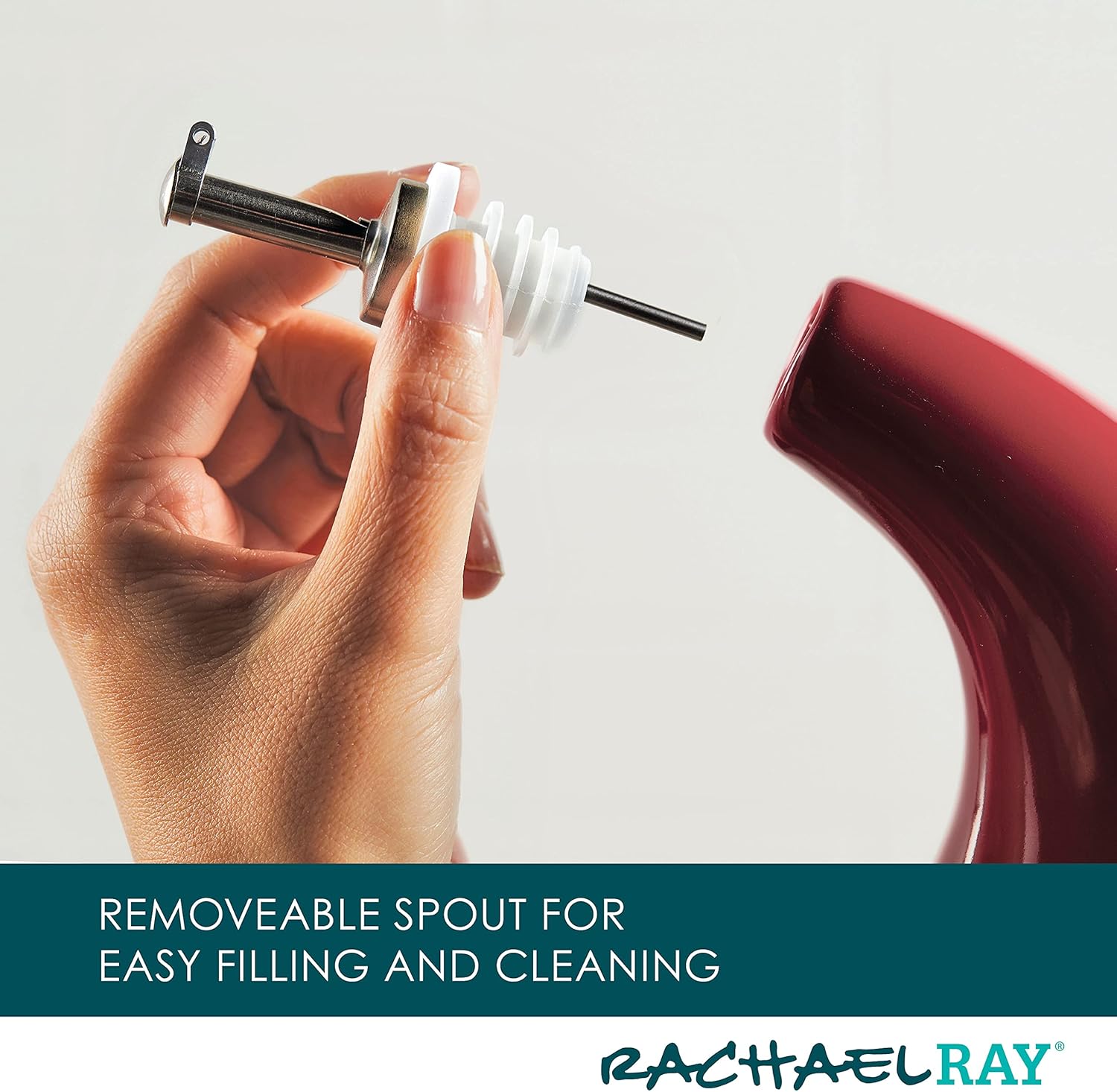 Rachael Ray Ceramic EVOO Oil and Vinegar Dispensing Bottle with Spout, 24 Ounce - Cranberry Red