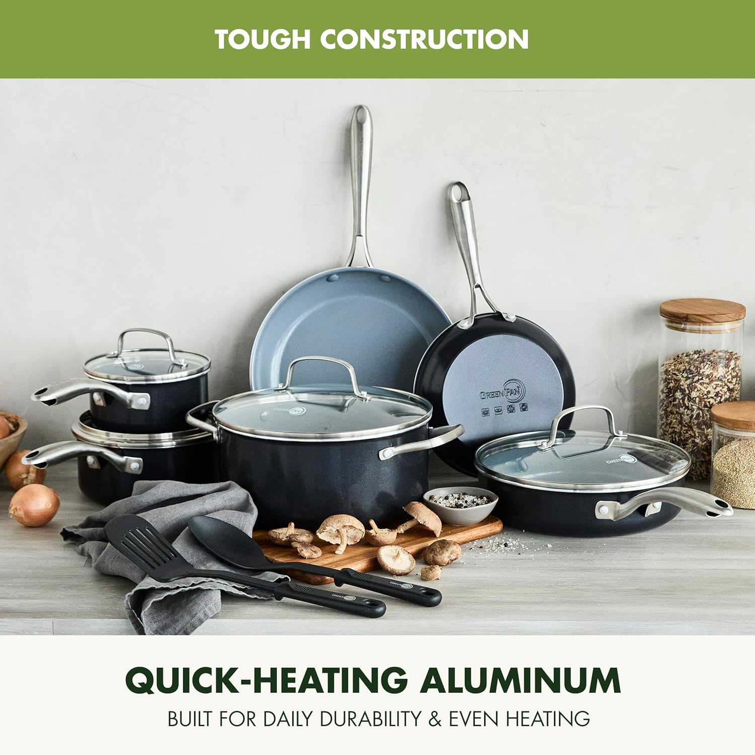 GreenPan 12 Piece Nonstick Swift Cookware Set, Ceramic PFAS-Free Pots & Pans with Lids, Dishwasher & Oven/Broiler Safe to 600F, Kitchen Cooking Set, Sauce, Saute, Stock, Frying Pans, Gray