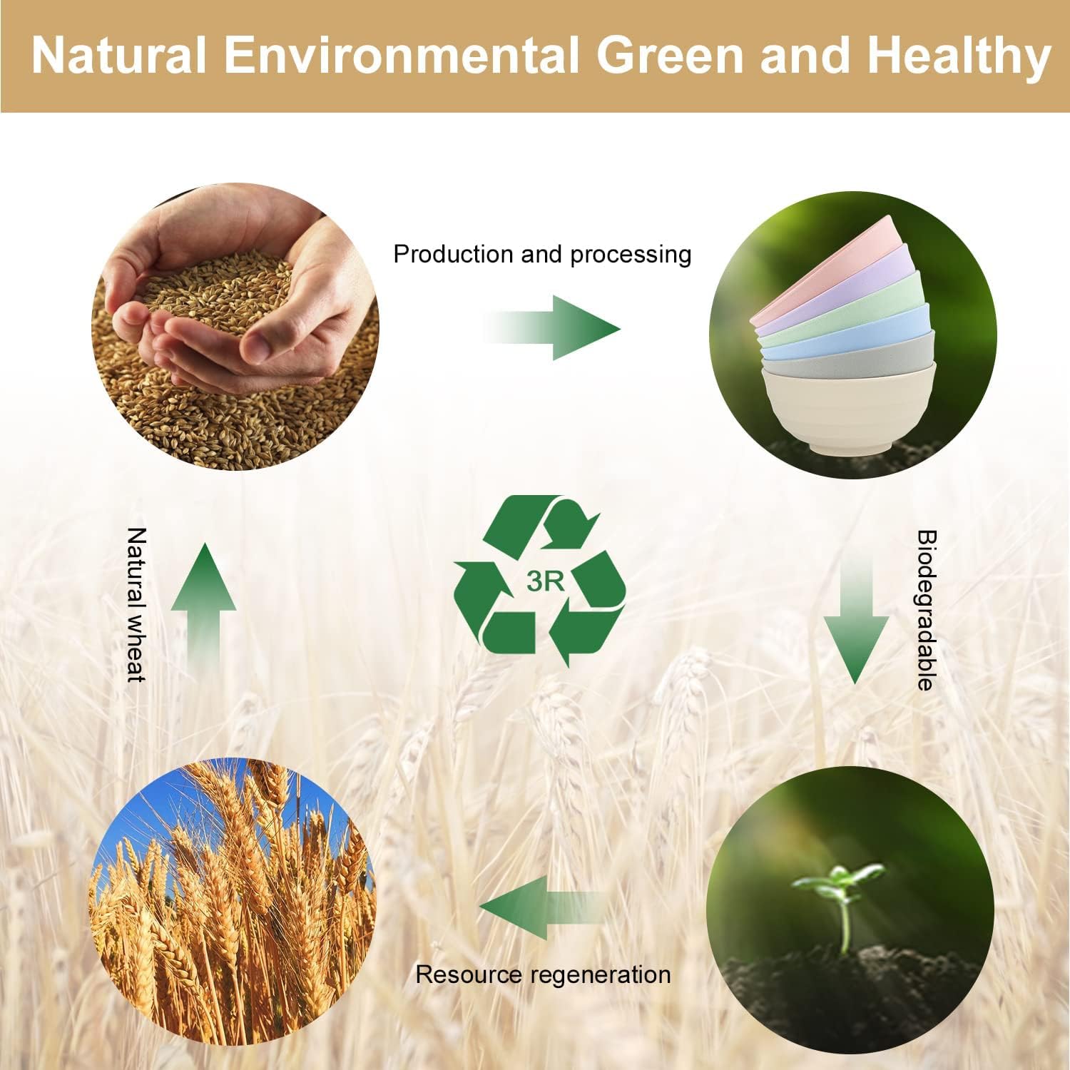 - 🌾【Wheat Straw Materials】These bowls set is made of natural organic wheat straw fiber, the material is non-toxic,odorless.There is no plastics and harmful chemical materials.Very healthy and beautiful tableware for your family.