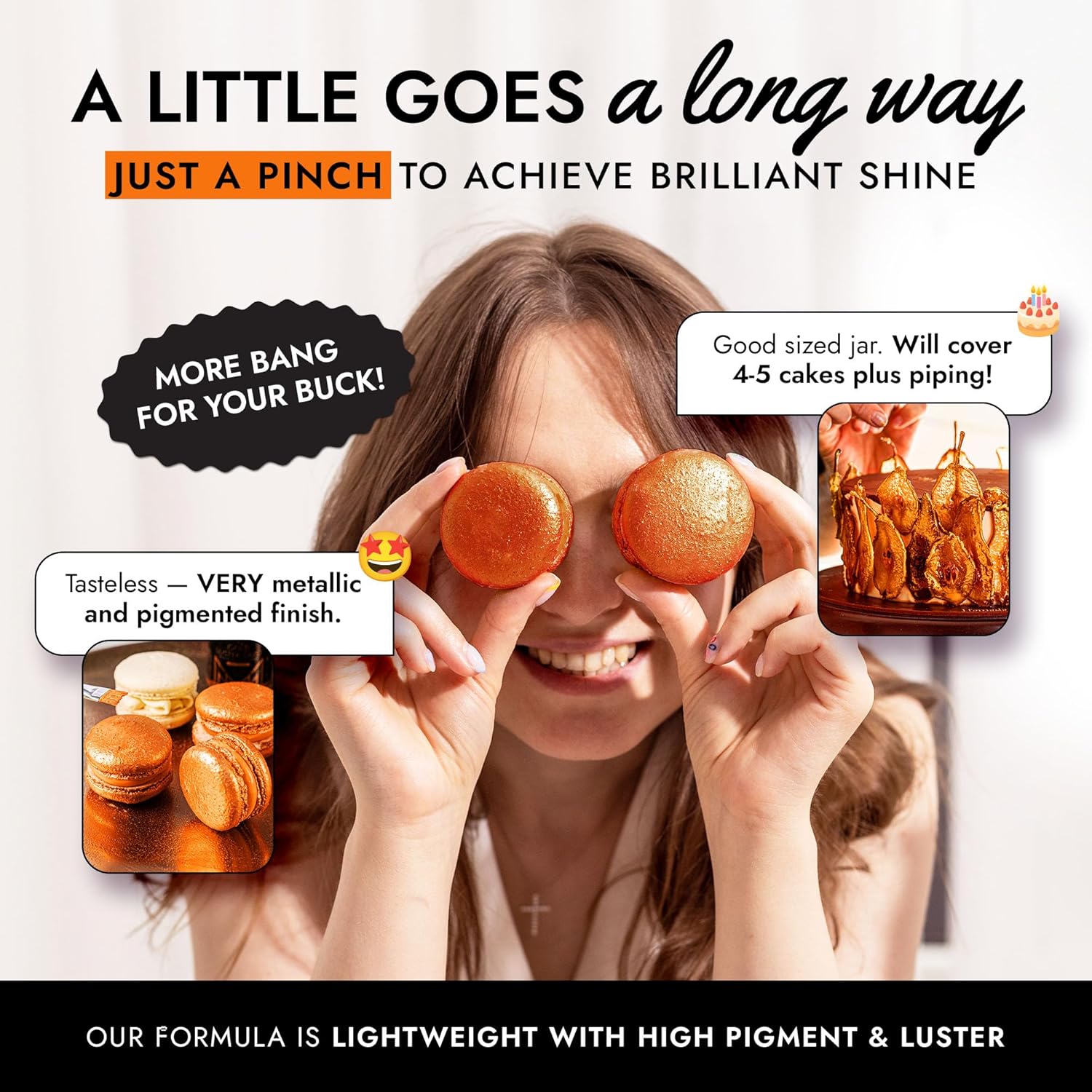 - MULTIPLE COLORS AVAILABLE: Available in 12 vibrant colors, including gold, pink, silver, and more. Our edible luster dust is perfect for themed parties, holidays, halloween, and special occasions. Mix and match to create stunning, eye-catching decorations for any event.