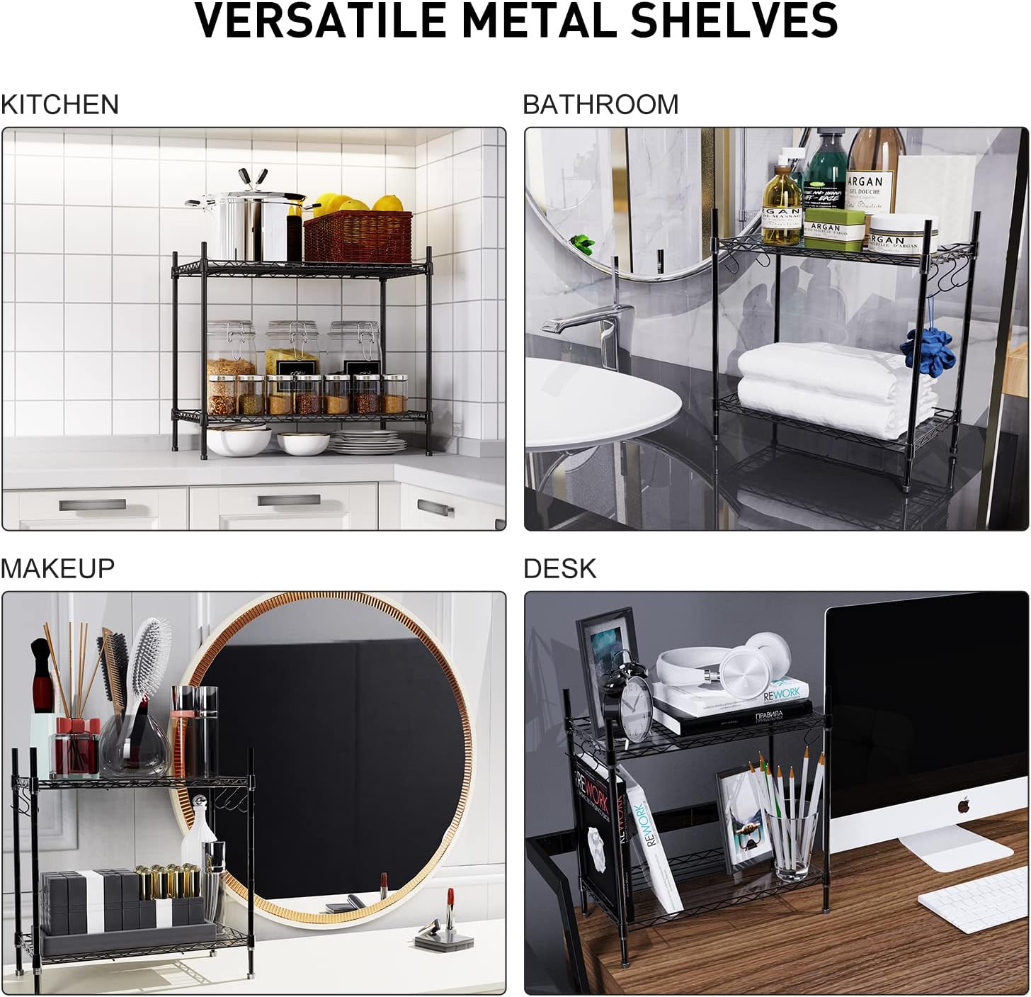 - 【Easy Assembly & Adjustment】Assembly has never been easier, with no tools required to assemble, and it only takes you 5 minutes to install the countertop organizer. Storage shelves is designed with easy adjustable clips, and the height of each layer can be adjusted by moving the cross bar up and down to meet the different height needs of different objects.