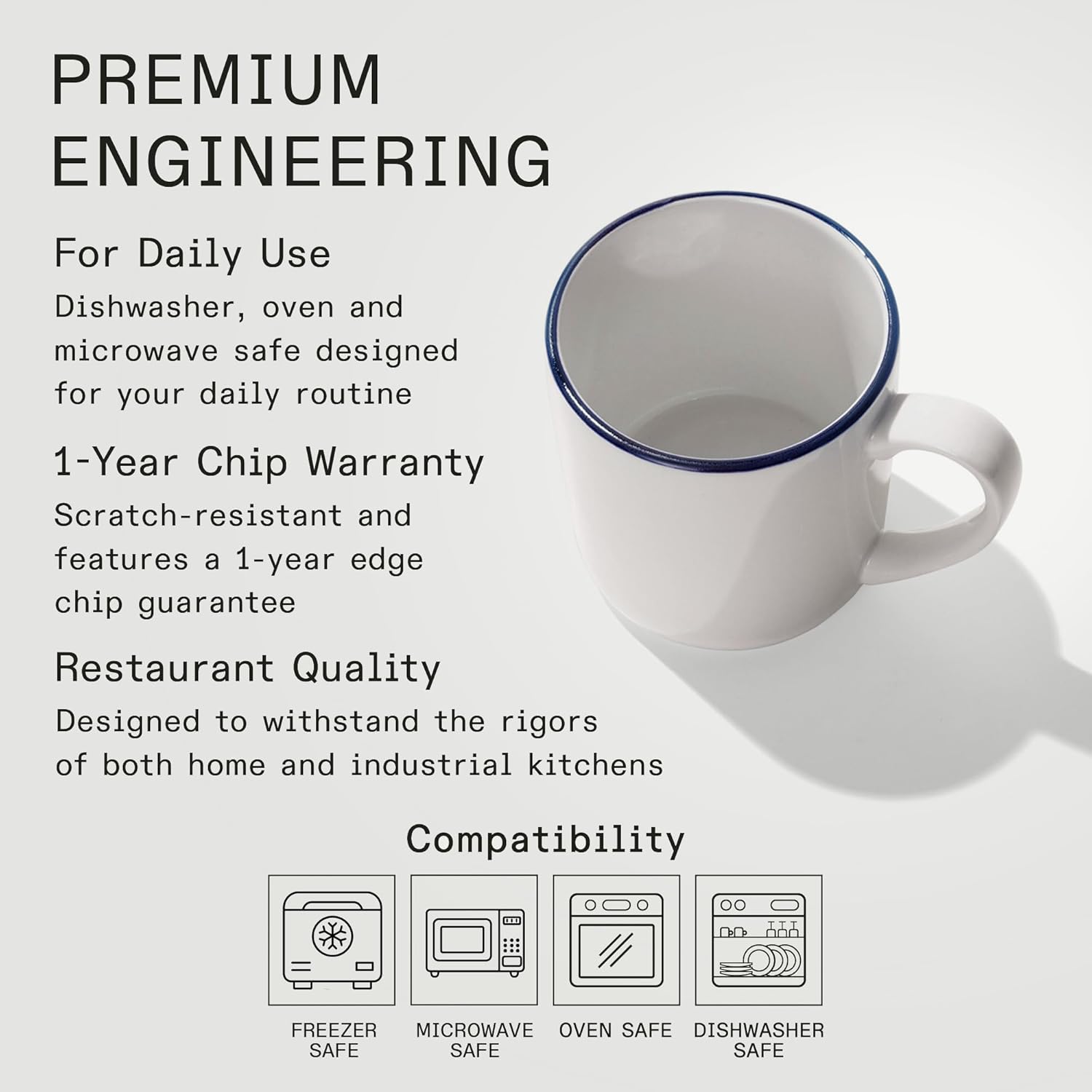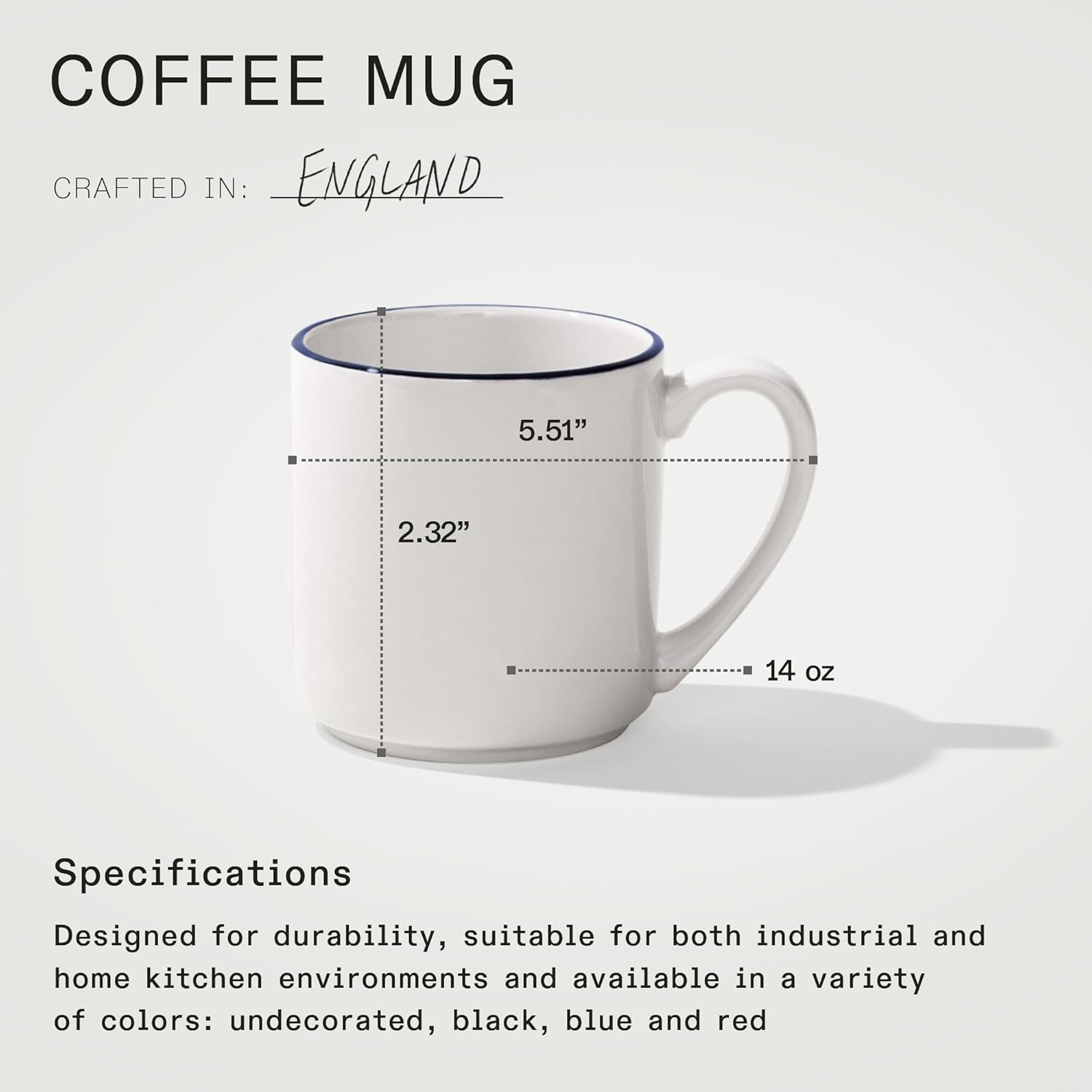 Made In Cookware - Set of 4 - Coffee Mug Set - 12 oz - White With Navy Rim - Porcelain - Crafted in England - Dishwasher and Microwave Safe