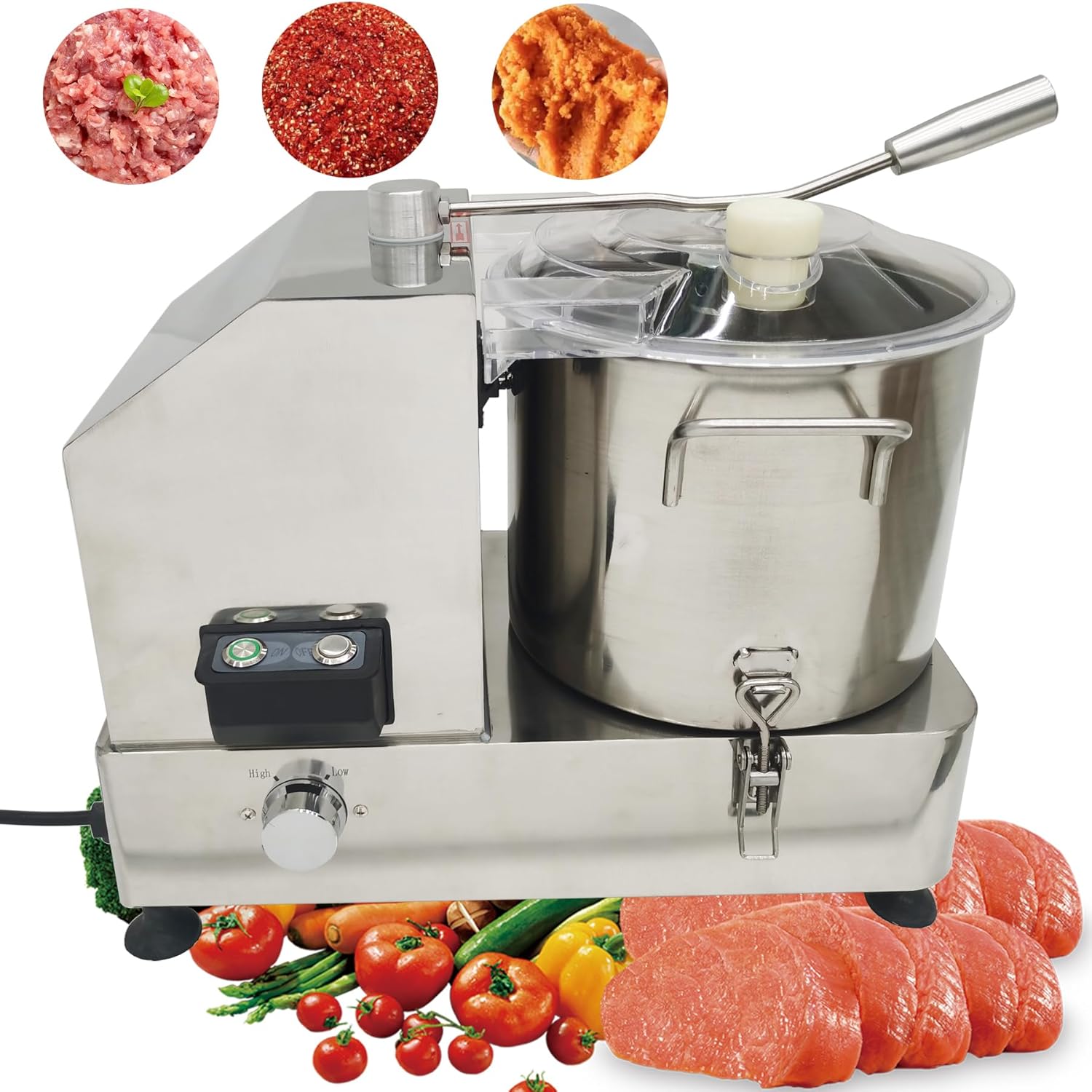 - Speed Control Knob: High and low dual-speed adjustable, can be freely adjusted according to the food. High speed is suitable for harder ingredients, low speed is suitable for softer ingredients. Commercial food processor is also equipped with a start and stop switch for convenience and safety.