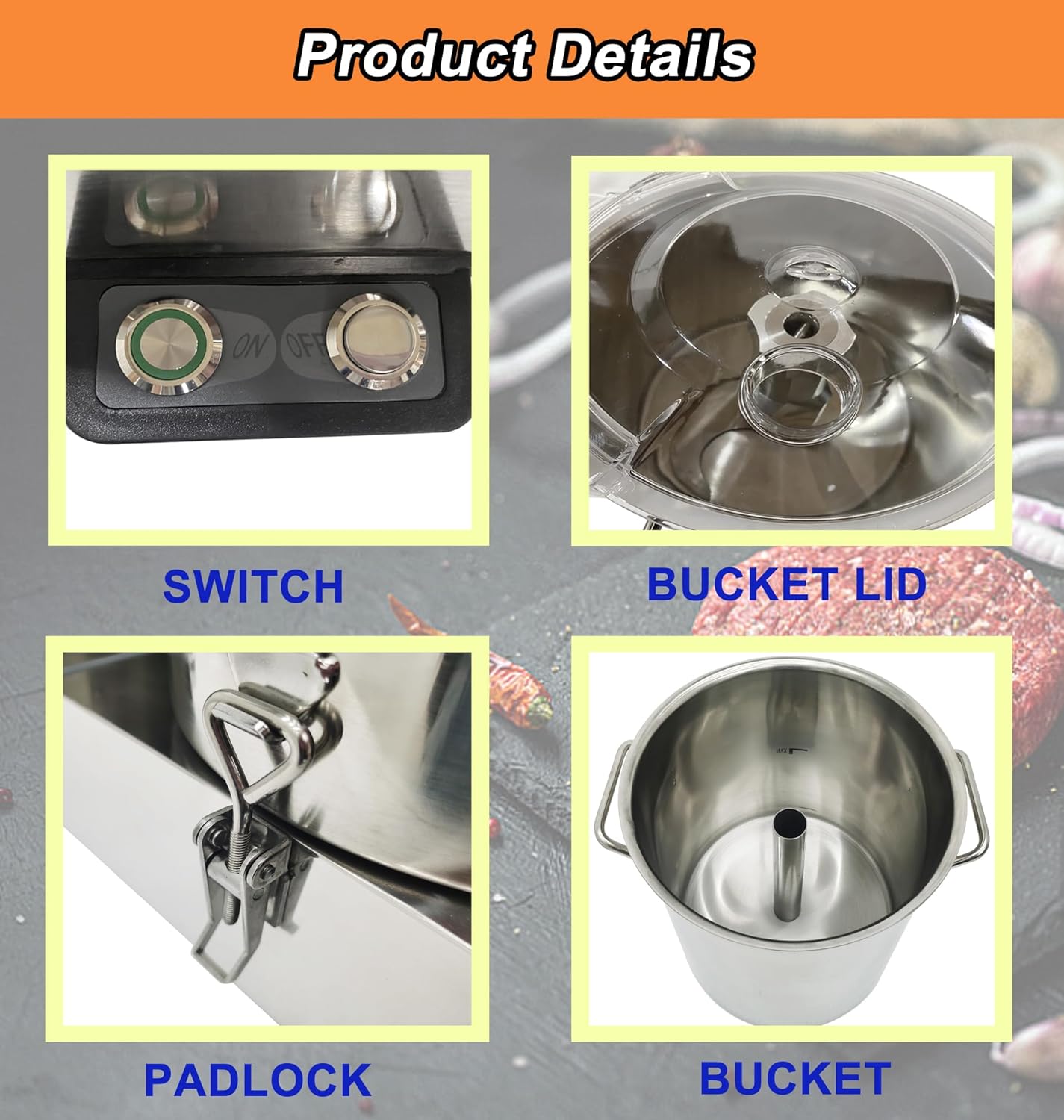 - Stainless Steel Material: Expertly crafted from premium 304 stainless steel for durability and corrosion resistance. Large capacity stainless steel barrel, removable, easy to clean. Meat mincer is also equipped with ventilation openings for better heat dissipation, which can extend the service life of the components inside the machine.