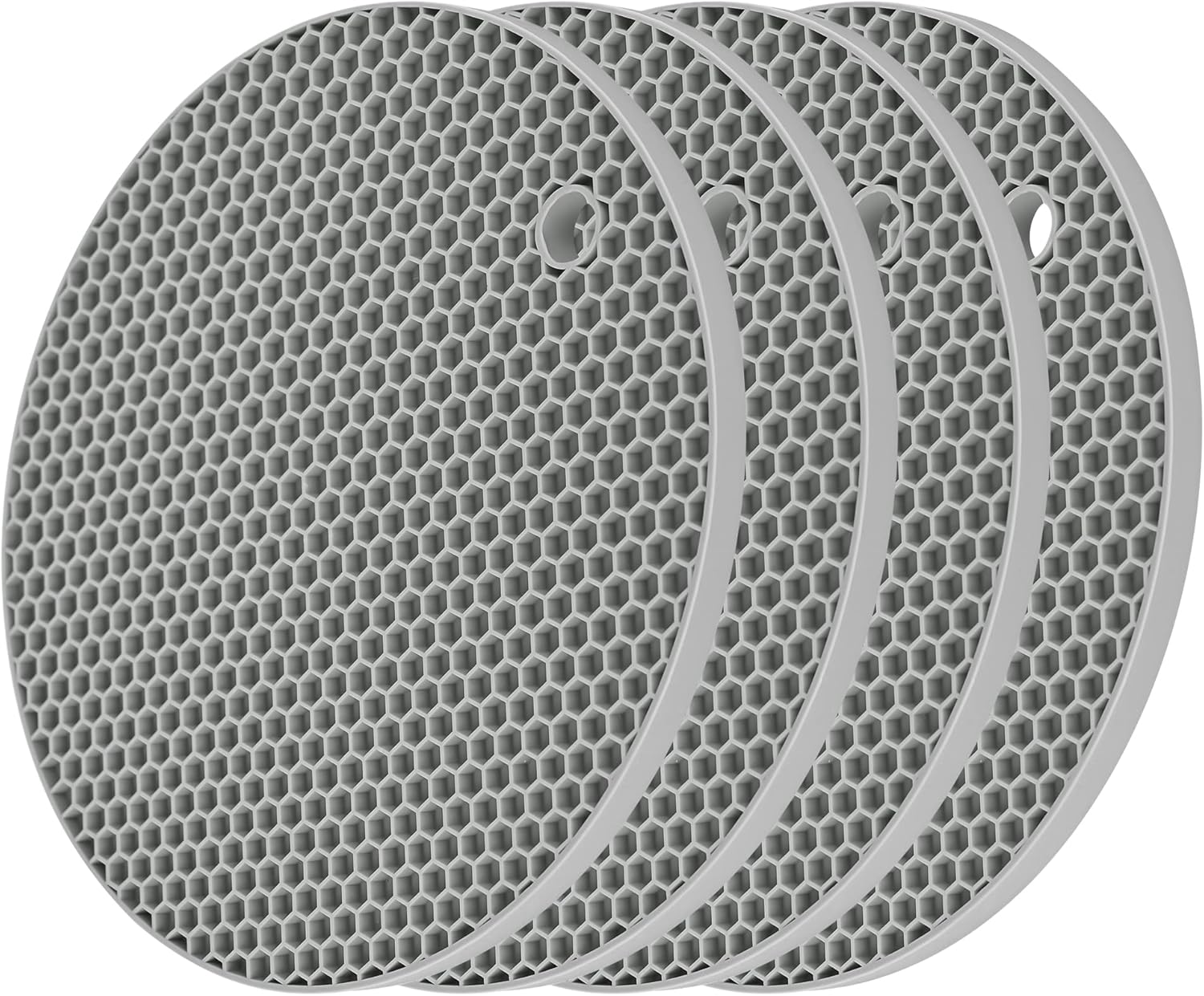 Trivets for Hot Dishes, Siicone Trivet Mat Hot Pads for Kitchen Tabletop, Round Silicone Pot Holders Mat, Trivets for Pots and Pans, Trivet for Quartz Countertops Mats Set 4 Light Gray