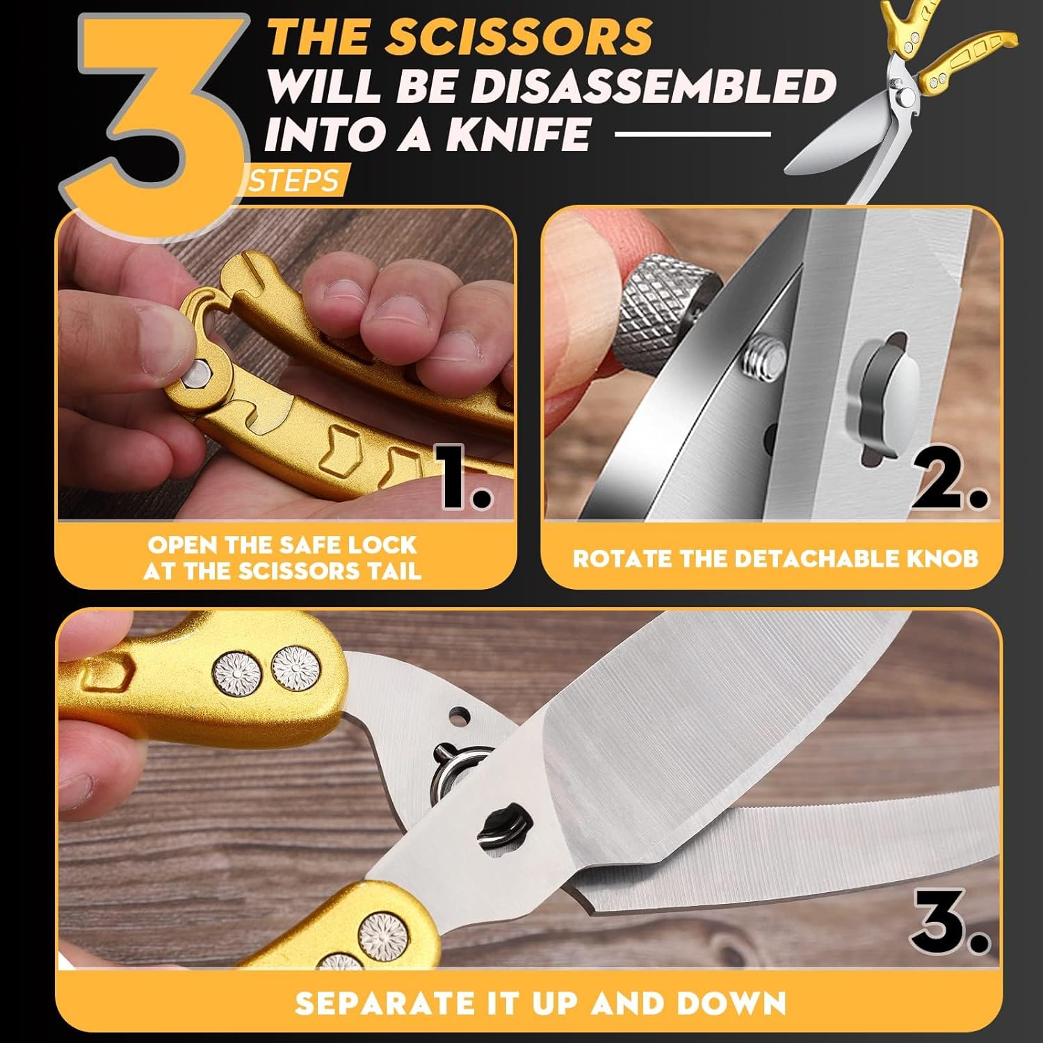 Poultry Shears, Germany Detachable Heavy Duty Kitchen Scissors, Golden Kitchen Shears With Knife Bottle Opener Gift Box, Multipurpose Kitchen Shears For Cooking Chicken Meat Turkey Thanksgiving