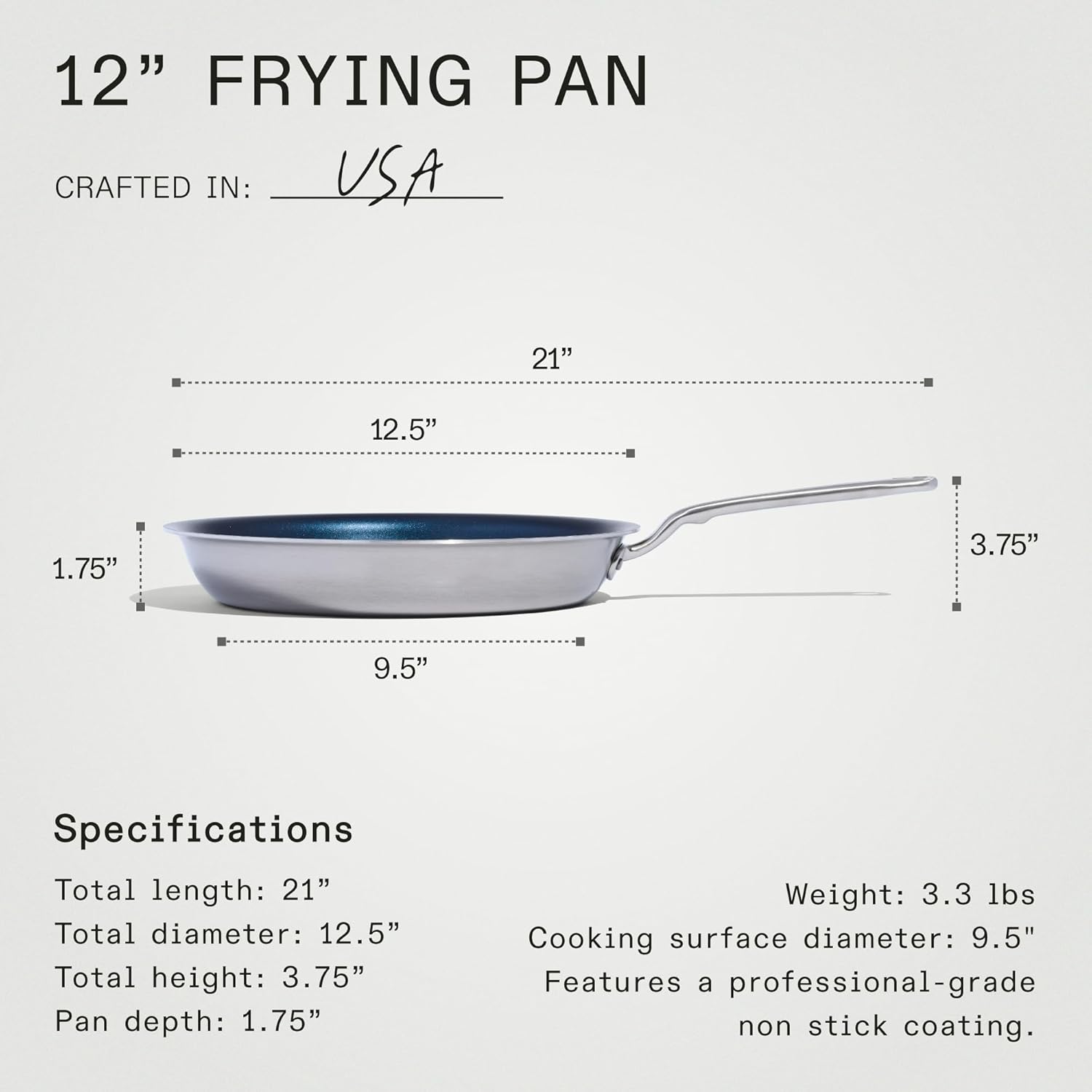 Made In Cookware - 12" Non Stick Frying Pan (Harbour Blue) - 5 Ply Stainless Clad Nonstick - Professional Cookware - Induction Compatible