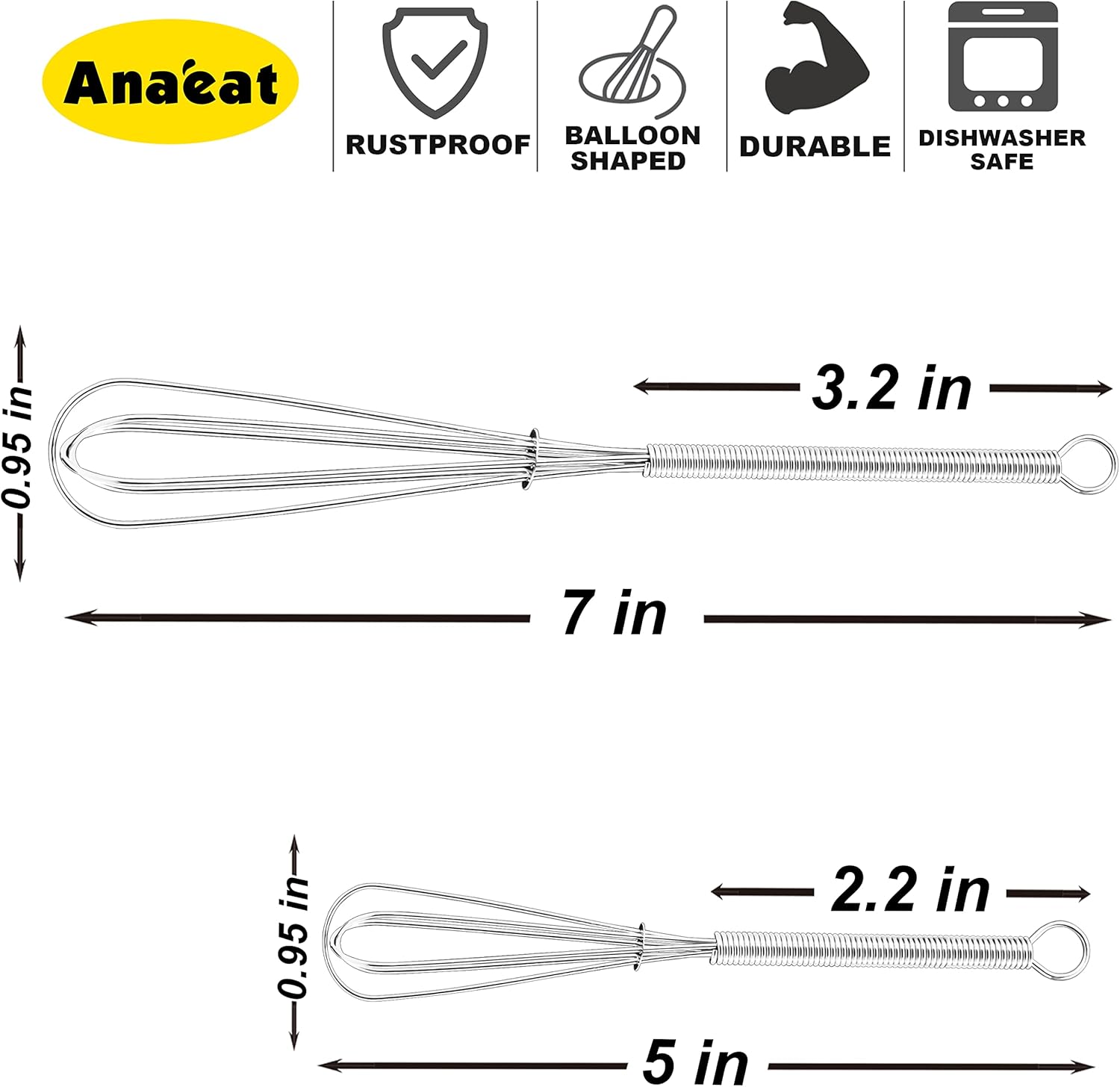- BRAND QUALITY GUARANTEE - QUALITY CAN SPEAK ITSELF. Anaeat focuses on kitchenware research and development. We are so confident that we have the best Mini Sized Whisks on the market. If you have any problems with Anaeat products, please feel free to send us a message by Amazon and we'll resend to you right away for free, or full money back. We are very concerned about every order, and try our best to Provide our customers with HEALTHY & DURABLE & ECOFRIENDLY kitchen accessories.