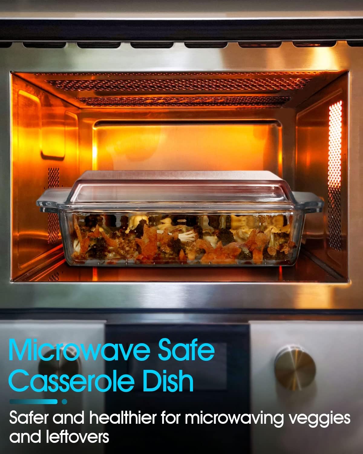 - TENDER, JUICY AND HEALTHY: The glass lid is a big plus for keeping the food moist while baking and microwaving in this glass microwave bowl. Your food will come out tender, juicy and healthy. Even sauce comes out creamy, not dry. You can save so much time throwing vegetables into the microwave with a little olive oil and water versus stove top cooking!
