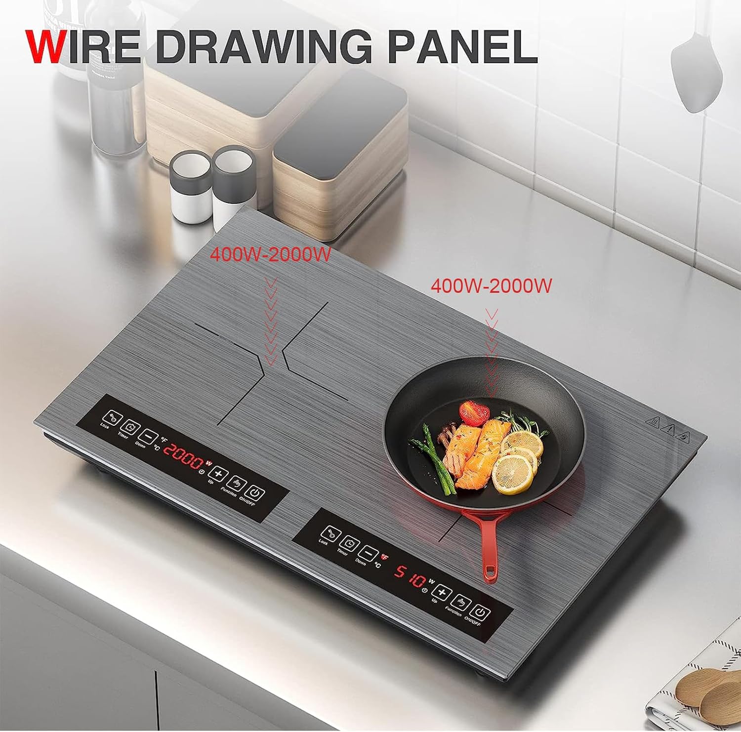 - HIGH ENERGY EFFICIENCY:Cooking your food 50% faster than conventional gas or electric cooktops. Burner heats only within the diameter of the pan, so no energy is being wasted. The sleek wire drawing panel offers an attractive look for any buyer. With high quality glass surface, the portable electric stove is not only easy to clean but also protected from scratches and withstands intense heat without cracking or chipping.