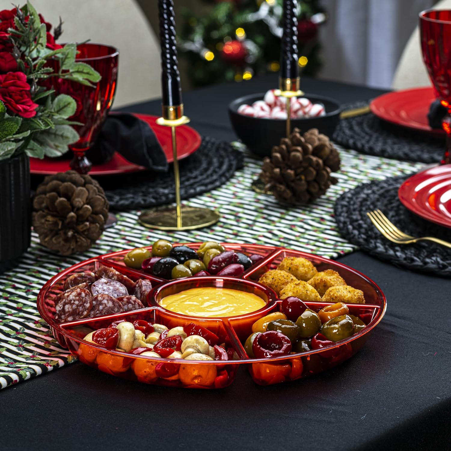 Plasticpro 6 Sectional Round Plastic Serving Tray/Platter (2, Red)