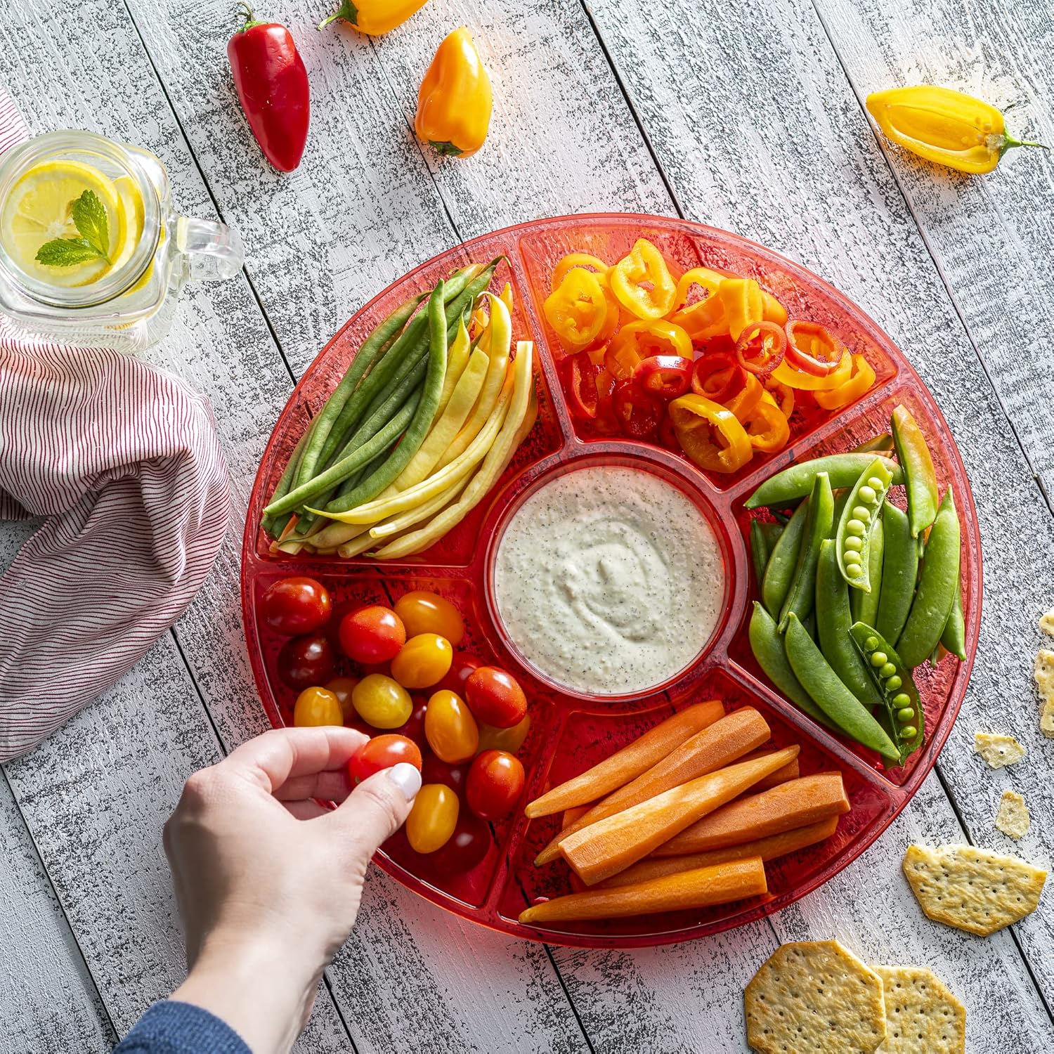 - USE: Plasticpro 6 Sectional Part Platter is Great for Use for Cut up Veggies, Nut Platter, Candy Platter, Veggy's & Sauce in the Center Weddings, Family gatherings, Holidays, Birthday Party's & for Every Event