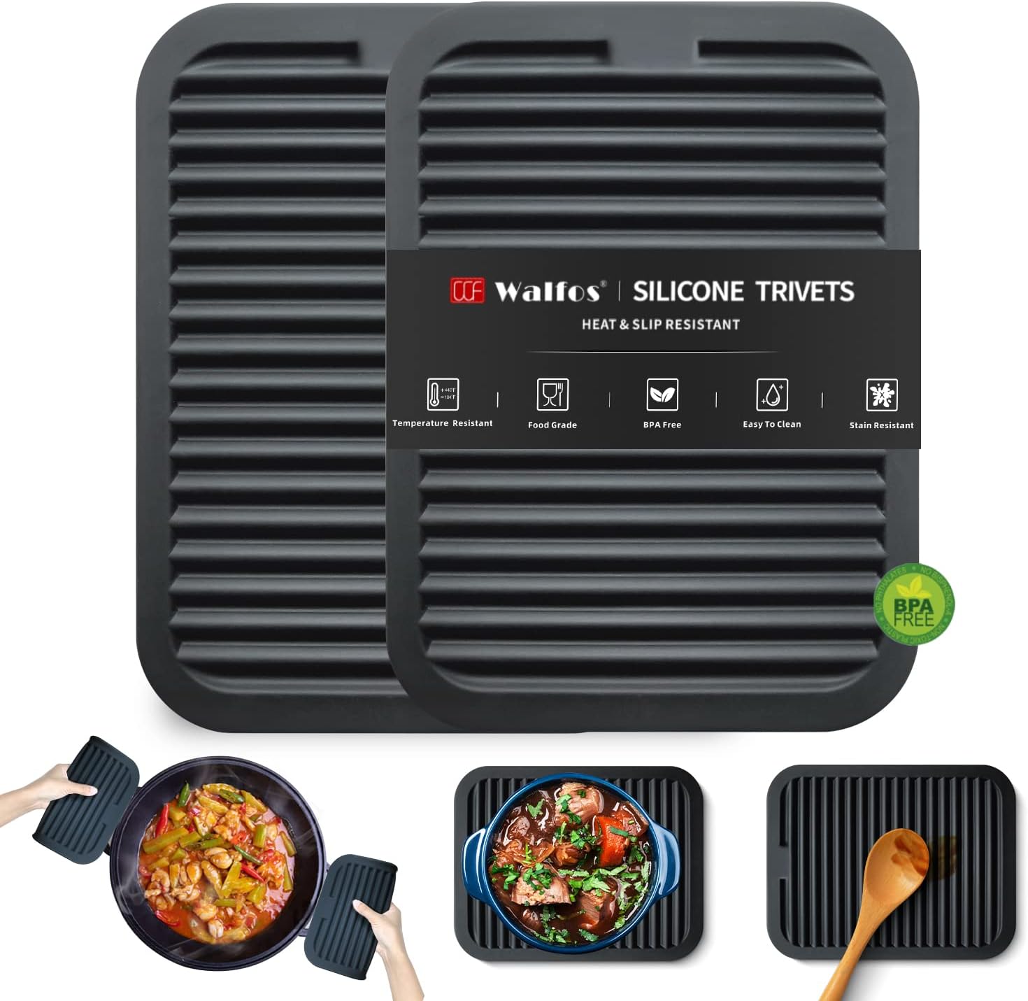 - HEAT RESISTANT: Walfos silicone hot pads for kitchen are heat resistant up to 446°F, Raised wide ridges will separates the hot pot from the table, protect your kitchen countertop from scalding