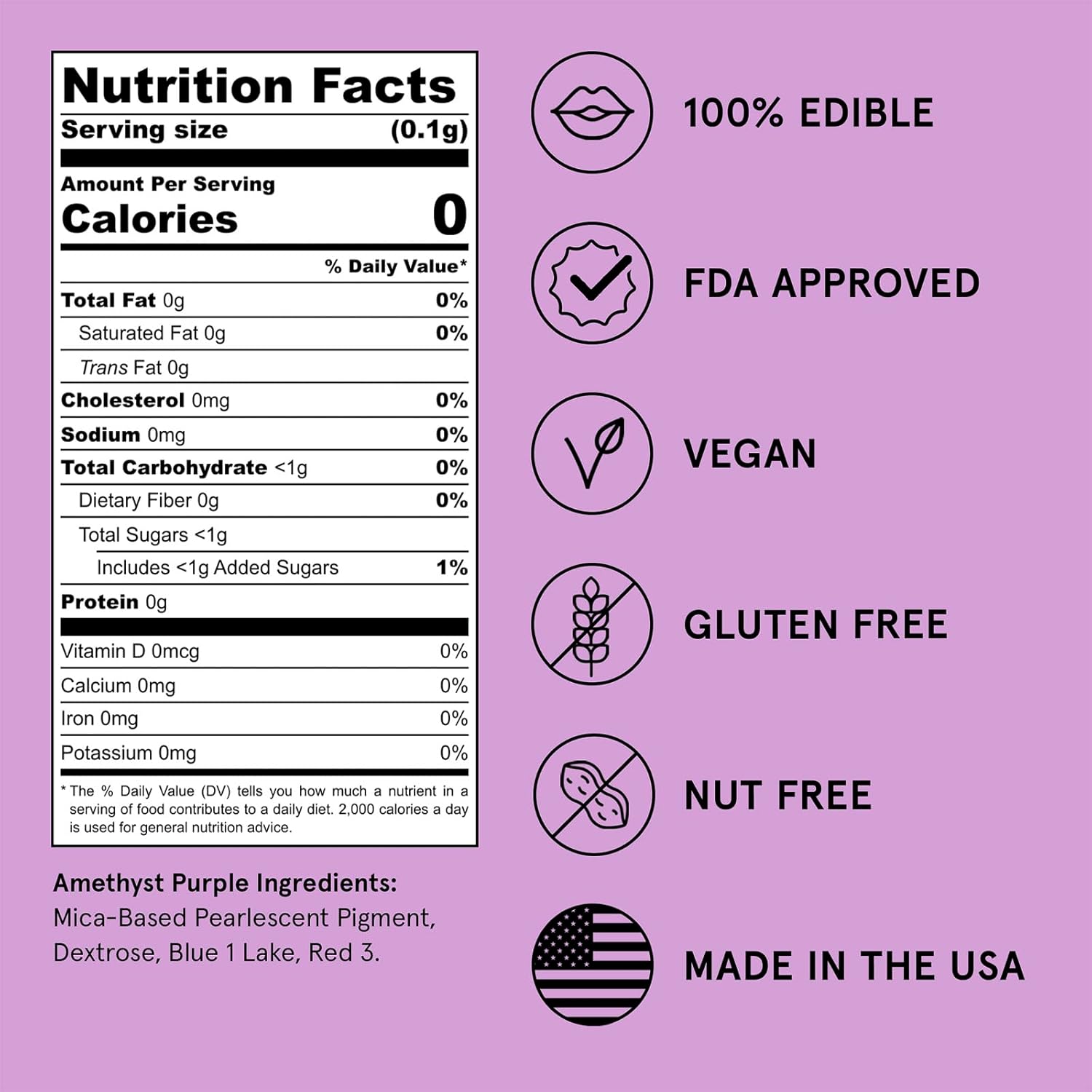 - NO TASTE. NO TEXTURE: Odorless, tasteless, and textureless, Fancy Edible Glitter is approved for both food and drink consumption.