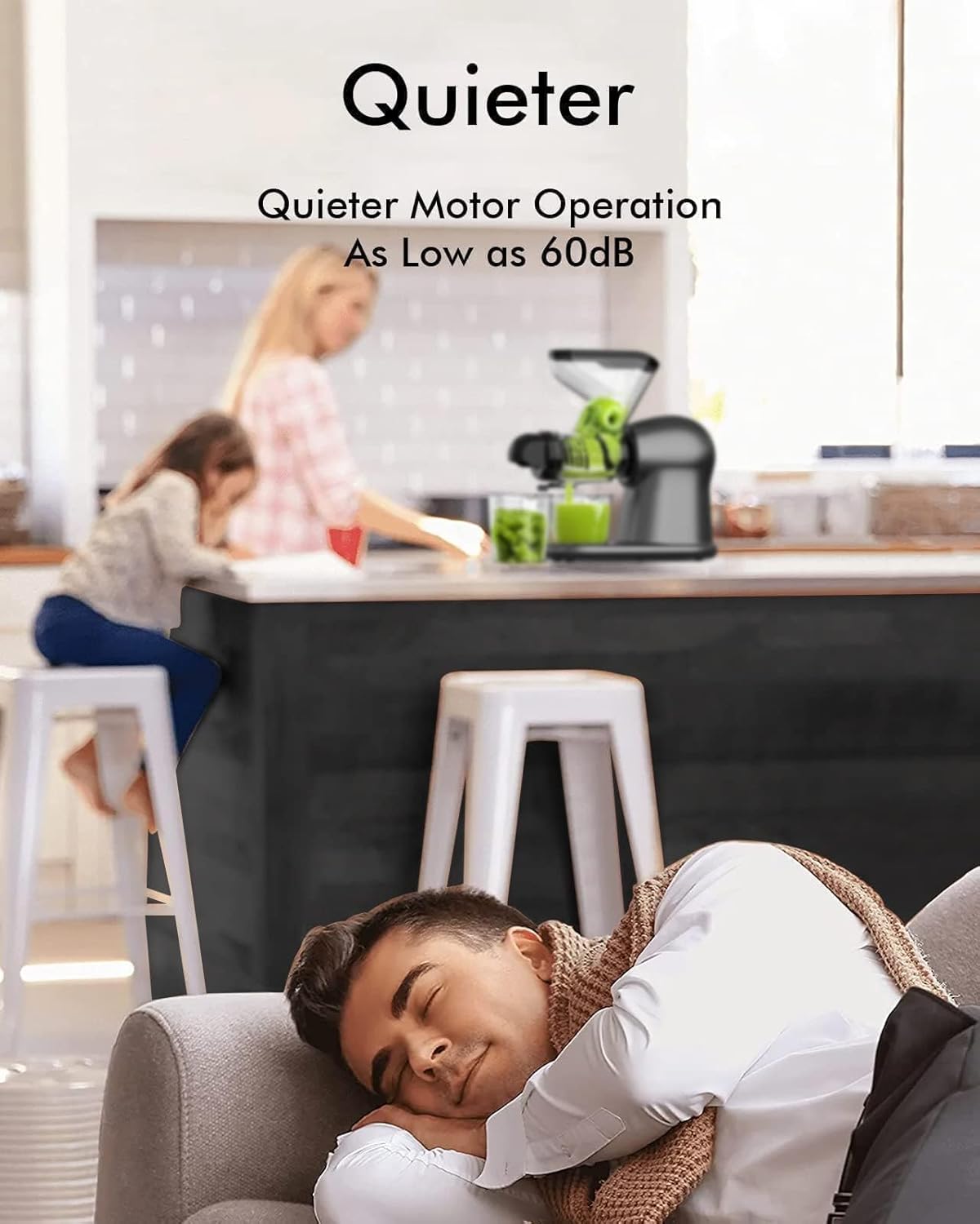 - 【Quiet and Powerful】The juicer machine is powered by a high-powered DC motor which seamlessly processes fruits and veggies with its low noise level of less than 65db. You can now enjoy your quiet and healthy juice every day, without disturbing your household or neighbors.