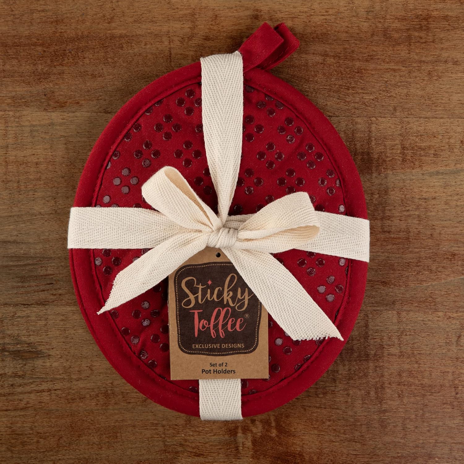 Sticky Toffee Silicone Pot Holders Set of 2, Red, Heat Resistant to 500°F, Non-Slip Oven Hot Pads with Oeko-Tex Cotton Shell, 7 x 9 in
