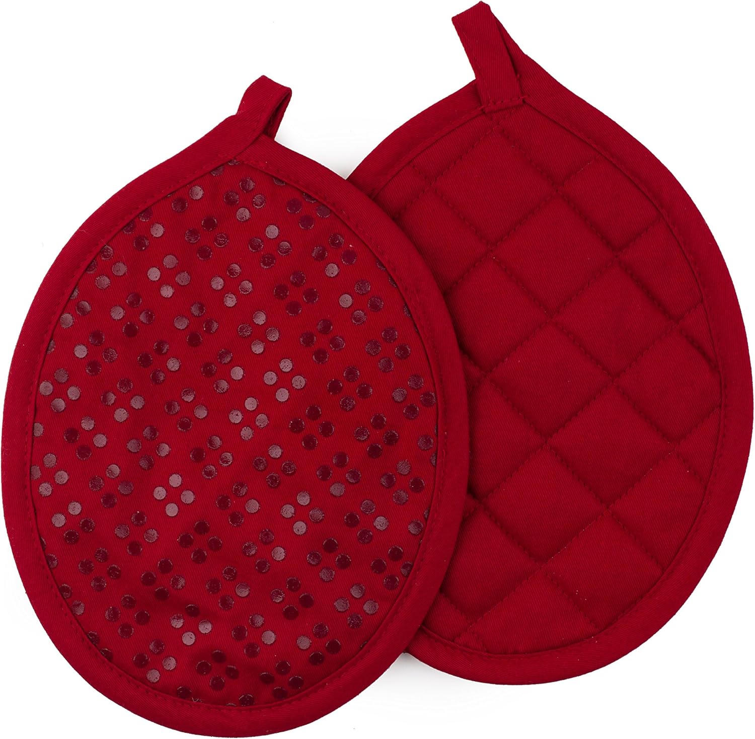 - NON-SLIP GRIP & HANGING LOOP: The printed silicone design on the pot holders provides a secure non-slip grip while handling pots and pans. It is rated to withstand up to 500 degrees Fahrenheit for your safety and ease of use. The pot holders are perfectly designed with a loop for easy hanging.