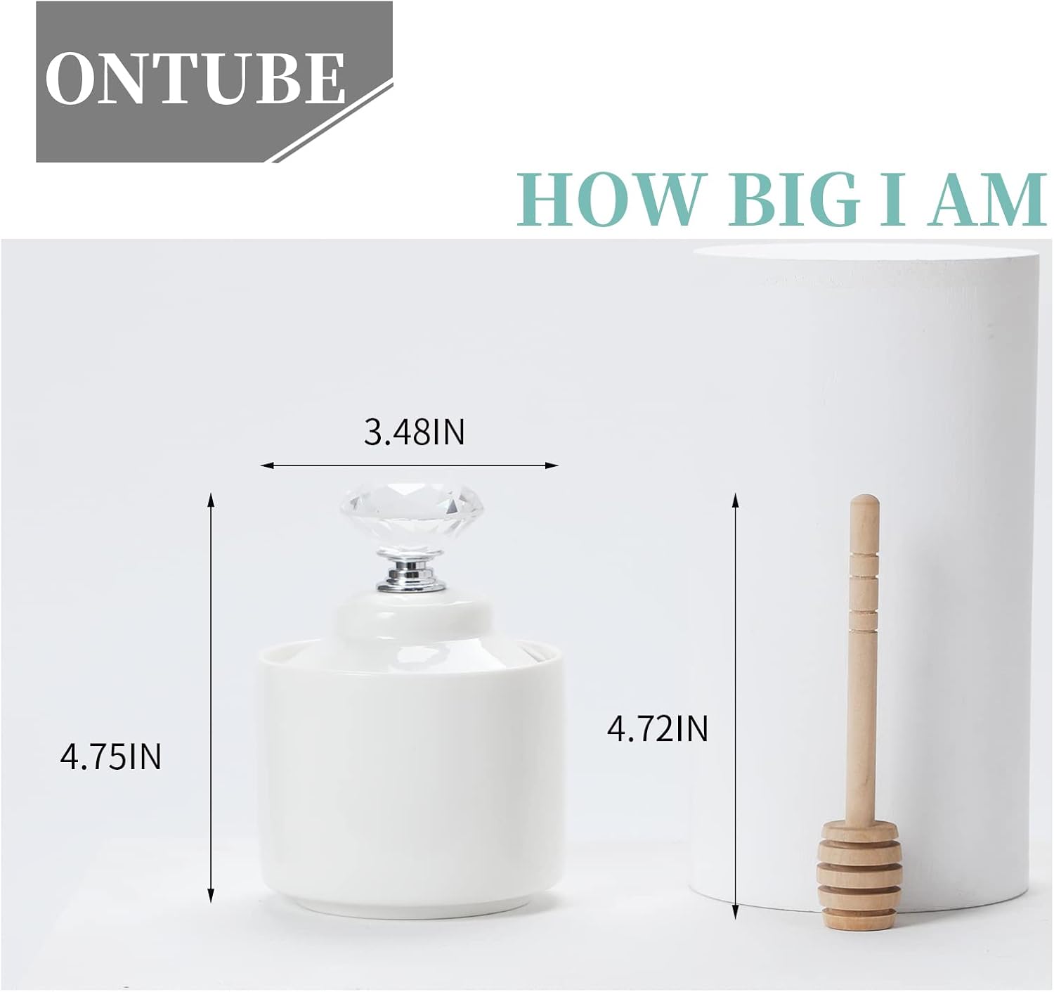 - HUMANIZED DESIGN: ONTUBE porcelain honey jar's size is 8 oz,3.48"Lx3.48"Wx4.75"H,suitable for daily use