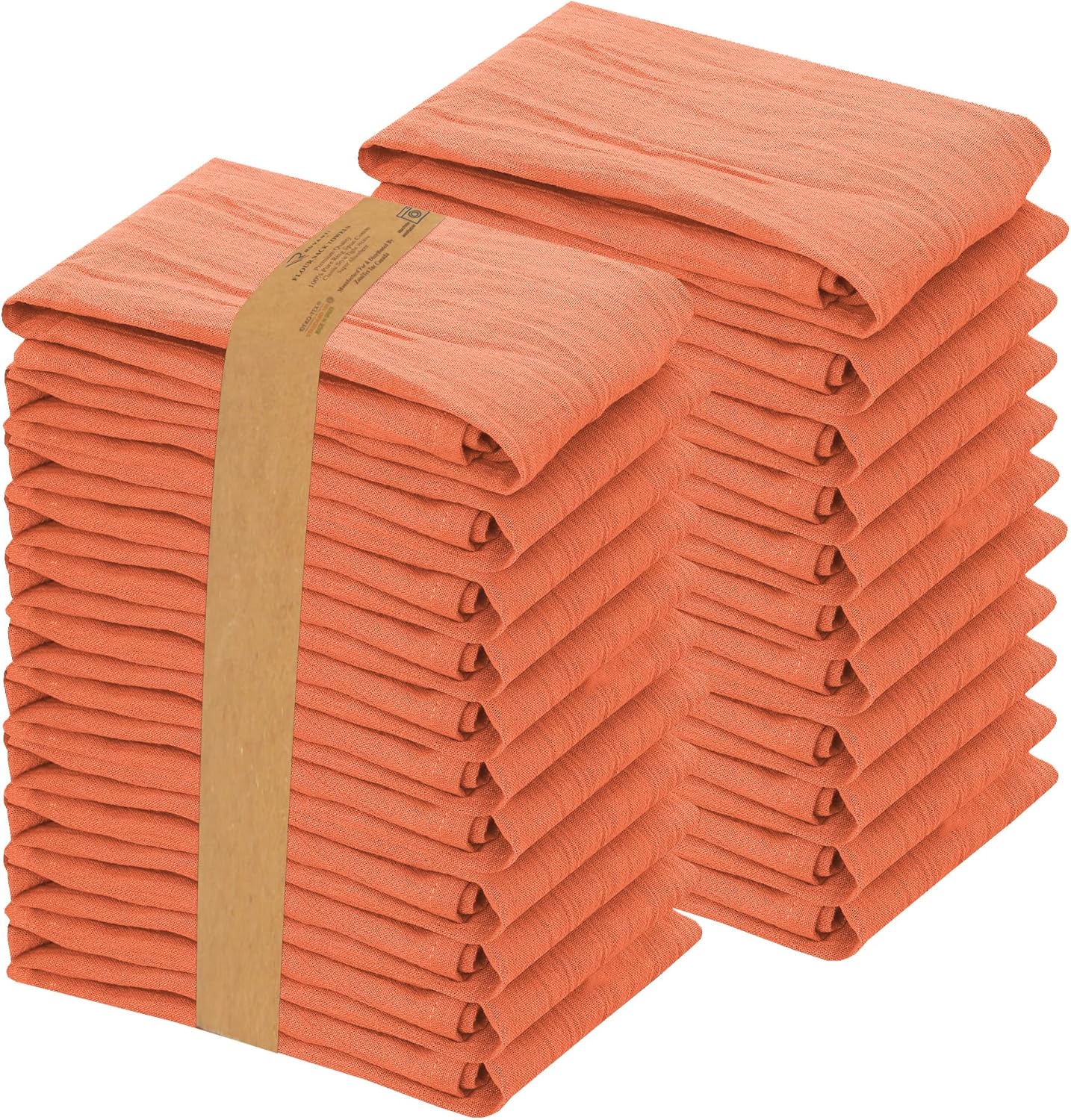 RUVANTI Flour Sack Towels 24 Pack 28x28 Inch, 100% Cotton Tea Towel, Reusable, Machine Washable, Absorbent BarTowels - Dish Cloth Perfect for Drying Dishes & Cleaning - Orange