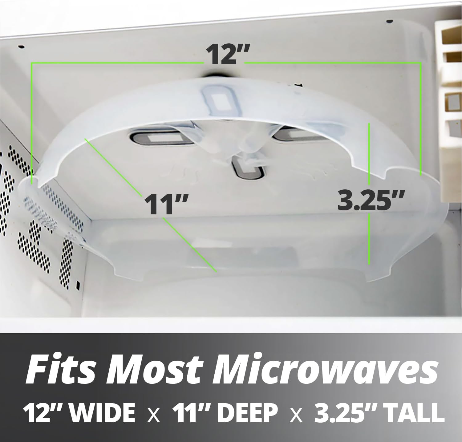- PLEASE CHECK BEFORE ORDERING - Designed to work with standard microwaves, microwave-safe plates and bowls. To avoid returns, watch our Pre-Order Compatibility Video. After watching, check your microwave for a flat metal ceiling or use a magnet to ensure the magnetic microwave dish cover will stick. NOTE: this specific model of Hover Cover measures 12 x 11 x 3.25 inches. Compatibility is based on typical model features and may vary. Please verify your microwave’s interior before purchase to ensure a proper fit.