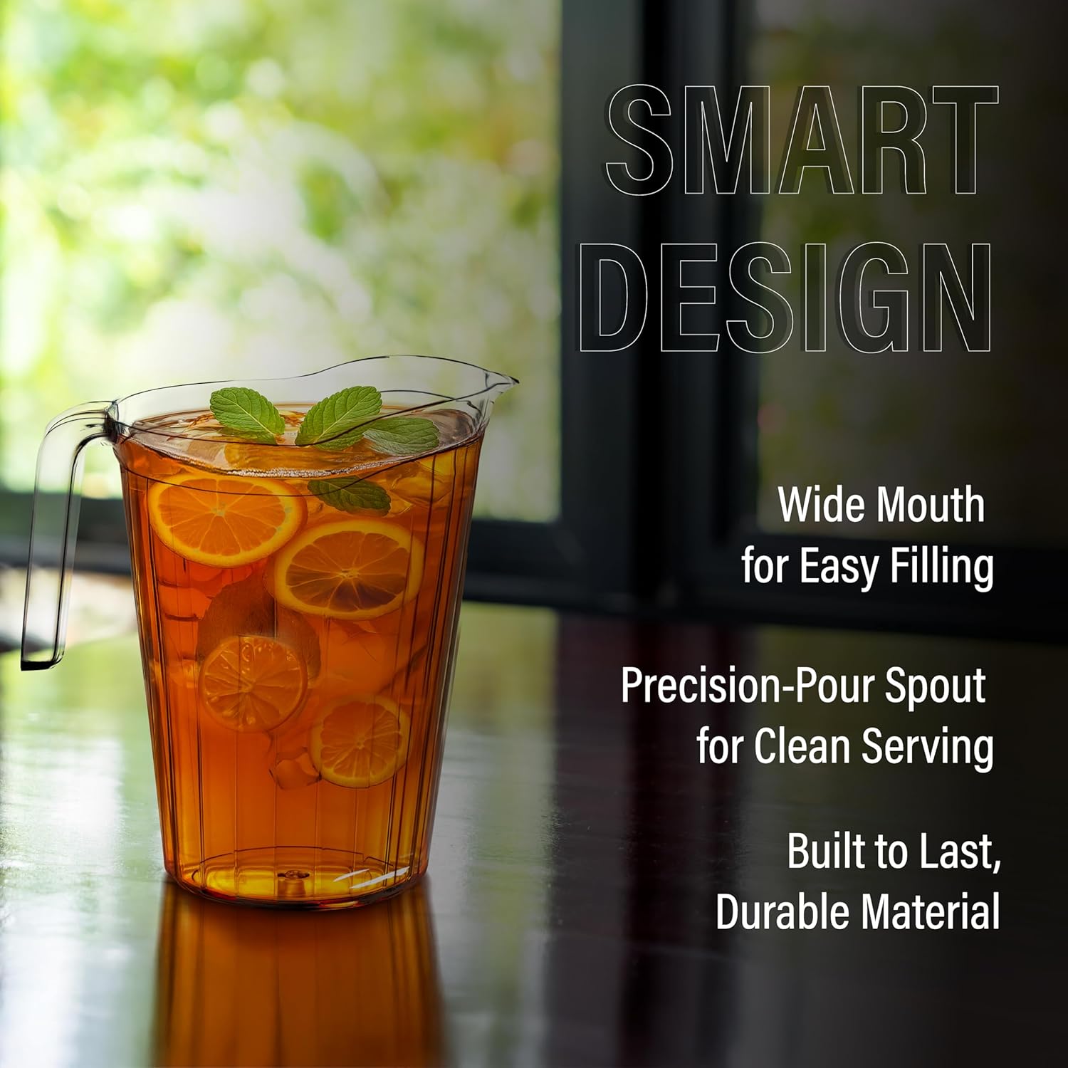 DecorRack 6 Pack - 75 oz Polycarbonate Plastic Pitcher Beverage Dispenser with Pour Spout Shatterproof Catering and Restaurant Serveware for Cold Drinks, Water, Lemonade, Beer, and Sangria (6 Pack)