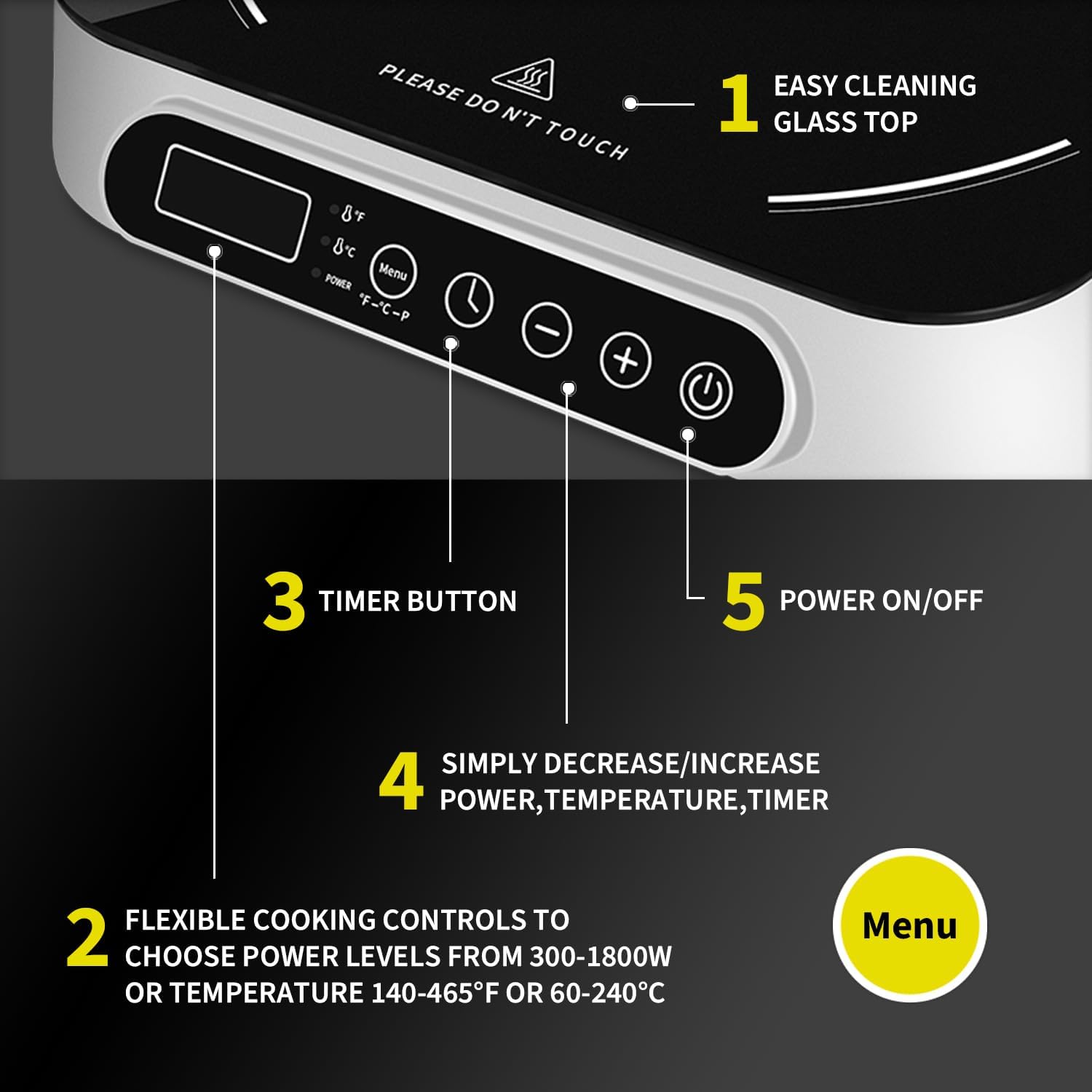- Compliant and Reliable – Operating at 120V 60Hz and ETL approved, our cooktop meets all North American electrical standards. Plus, we back our product with a 1-year warranty for your peace of mind. Should you have any questions or concerns, our dedicated support team is ready to assist you within 24 hours.
