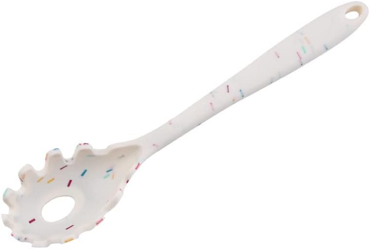 Silicone Pasta Fork (11.5"), High Heat Resistant to 480°F, Hygienic One Piece Design, Spaghetti Strainer & Server Spoon Pasta Forks (White)