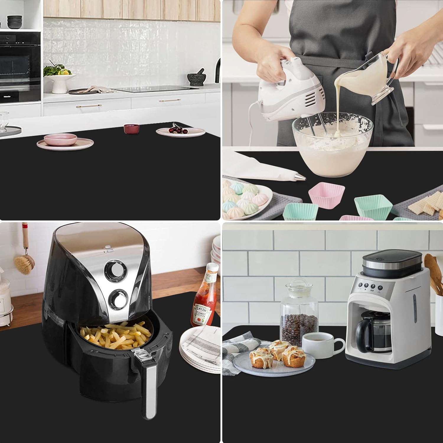 - Oversize : 2 Pack kitchen protector pads sized at 32 x 24 x 0.06 inches (L x W x T), provide a larger area to protect your counter top. It can be placed under the microwave, pot, air fryer, induction stove, toaster oven, coffee maker, etc.