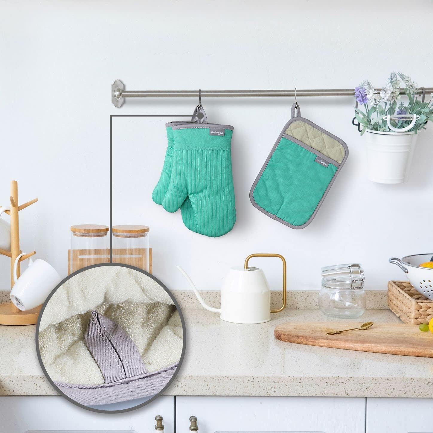 - Color : Oven Mitts and Pot Holders Set Green