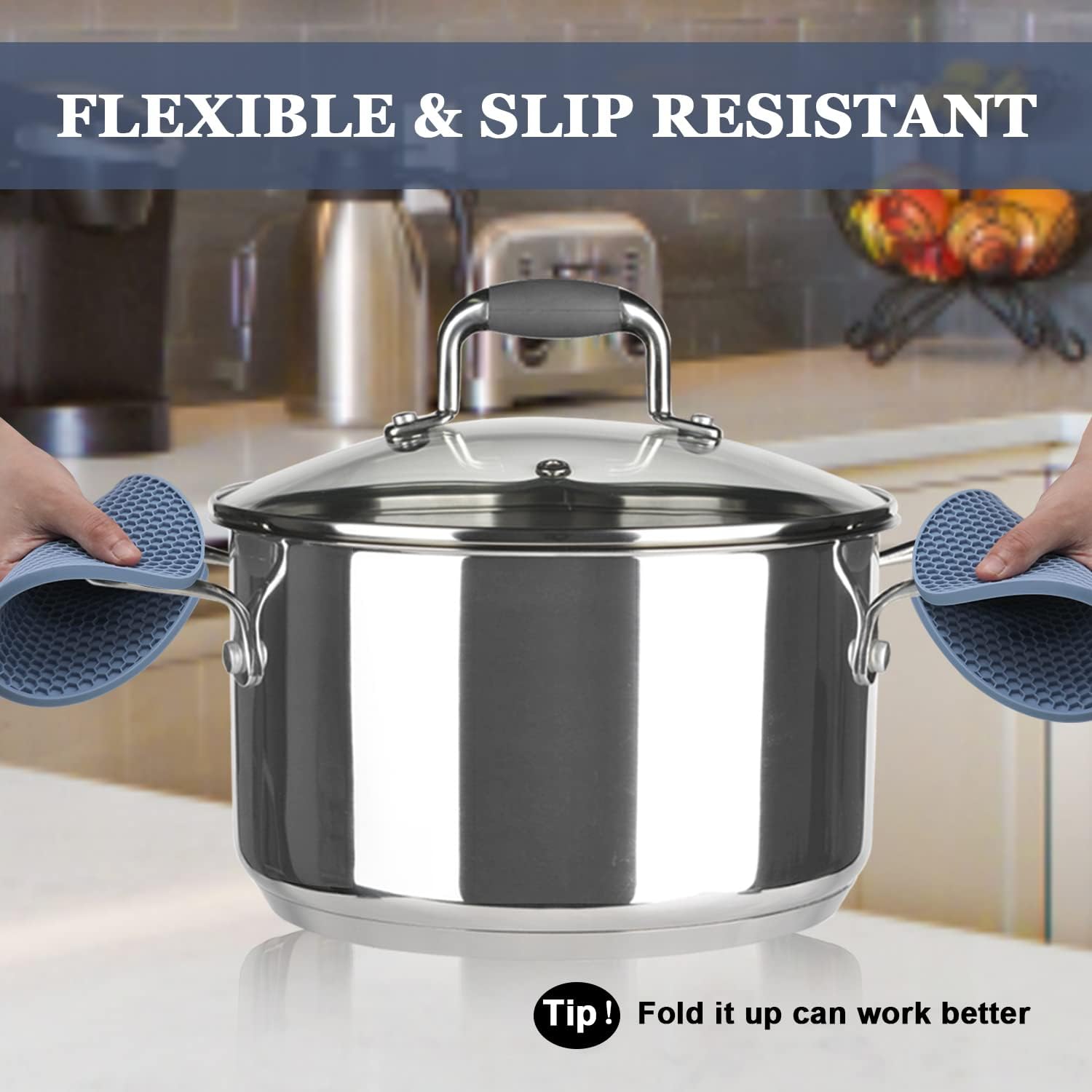 - 🎯 WATERPROOF & HEAT RESISTANT MAT - The blue pot holders for kitchen's heat resistant temperatures is from -30°F to 464°F(-30℃ to 240℃) that can be used safely in toaster ovens, freezers, microwaves, and dishwashers. Silicone hot pad is waterproof so that hot liquids won’t soak through and scald our skin. It definitely protects our table and counter from hot pans.