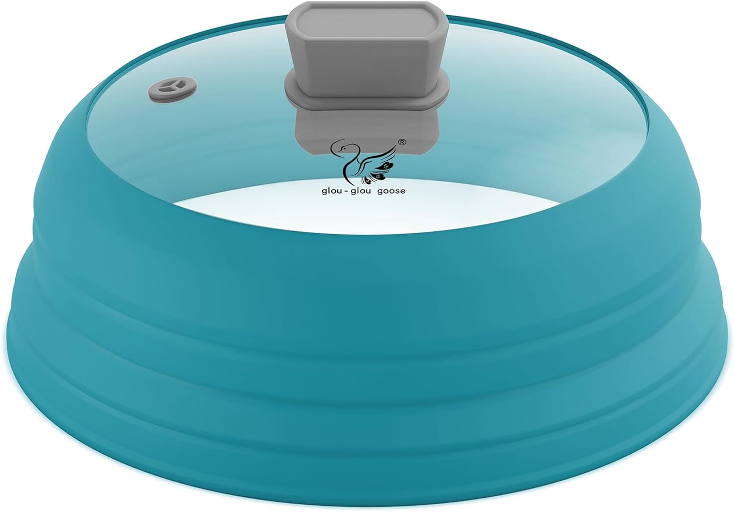 Microwave Splatter Cover Glass Cover Splatter Guard Lid with Collapsible Silicone for Food Cover Plate Cover 11.8 inch Blue