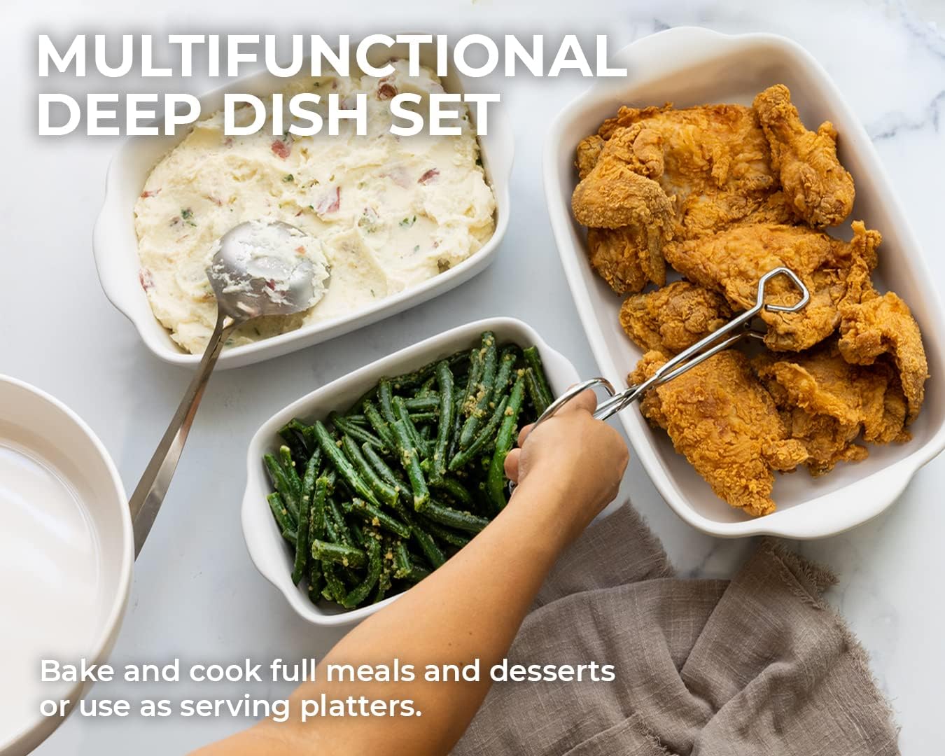 Saffron & Sage Casserole Dish Set of 3 - Baking Dishes for Oven, Contemporary White Ceramic Baking Dish Set, Heavy Duty Bakeware, Up to 500° High Heat Resistant, Dishwasher, Freezer and Food Safe