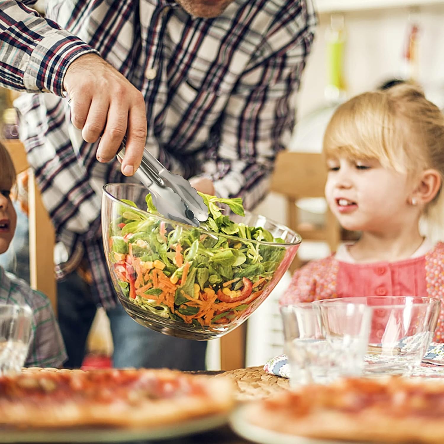 - How to use - The serving tongs are applicable for flipping burgers or fish, grilling meat or as salad tongs.Stainless Steel Metal Serving tongs work well on buffet, catering, wedding, home, party, restaurant, hotel, celebration.Ideal for serving salads, fruit, soups, dessert, steak, noodles, cake, cheese, vegetables,appetizer.