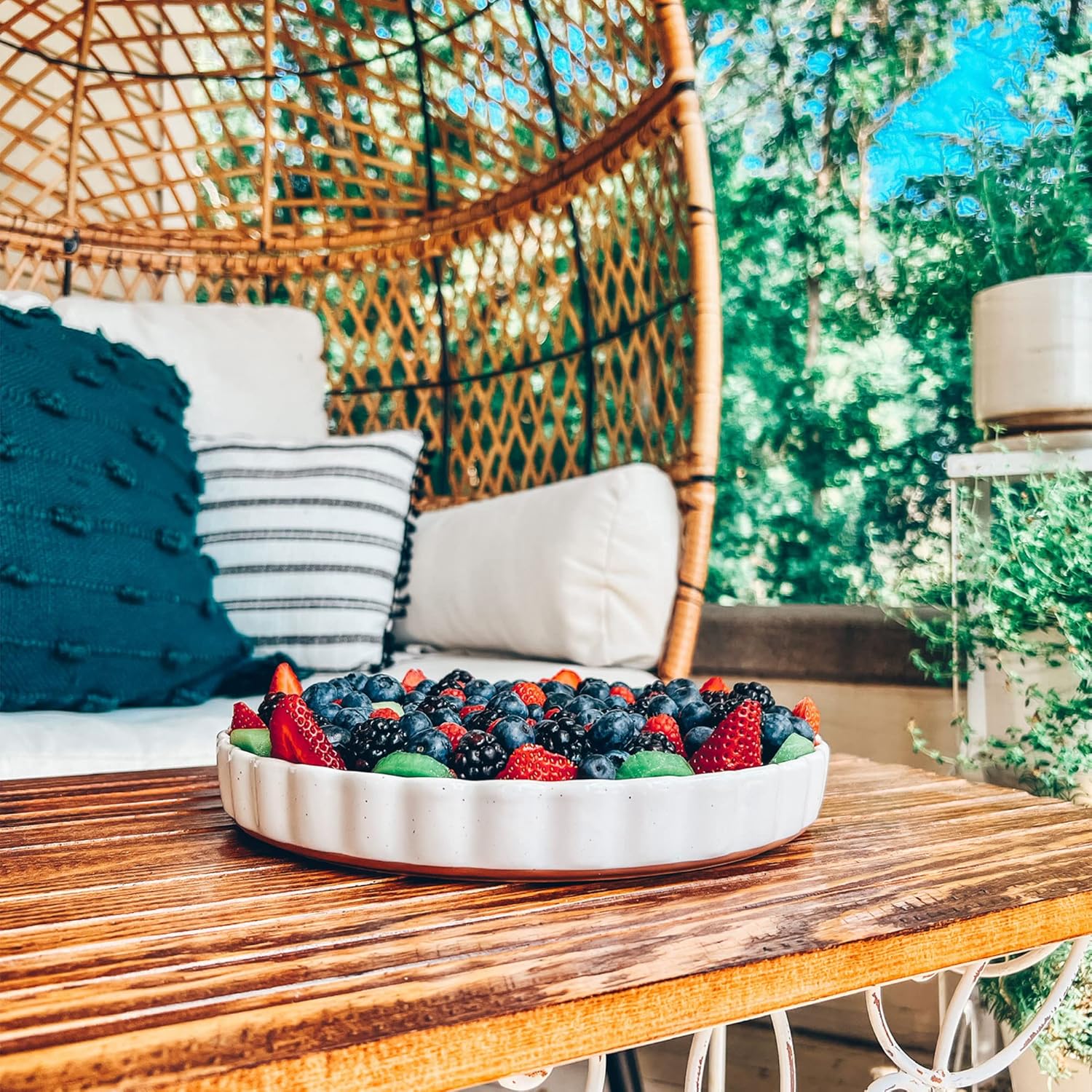 Mora Ceramic Tart Pan, 9.5 Inch Large Porcelain Baking Dish for Tarts, Quiche, Pie, Flan etc. Fluted Ruffled Edge, Oven, Microwave, Freezer, and Dishwasher safe - Great Gift For Bakers - Vanilla White