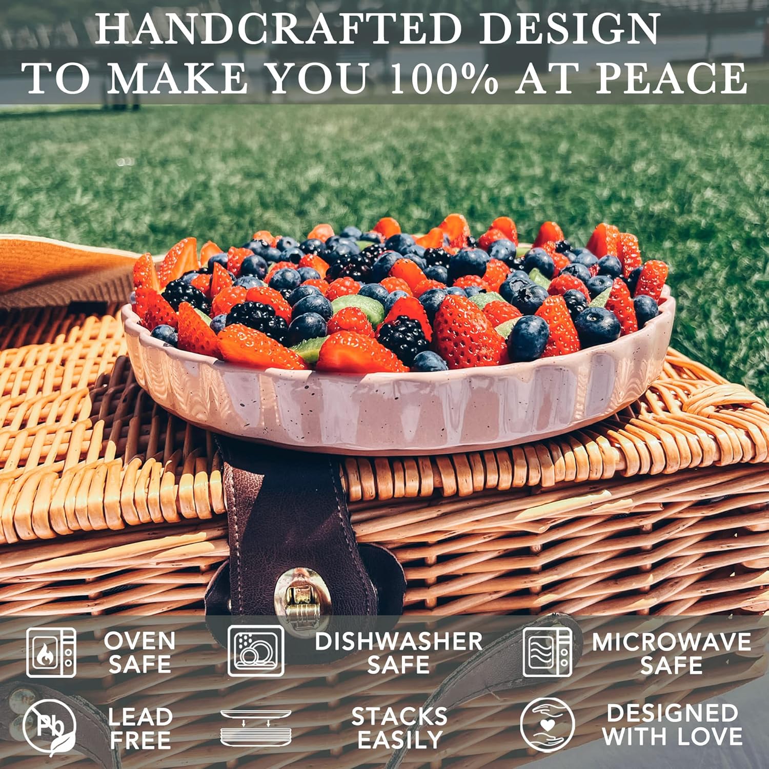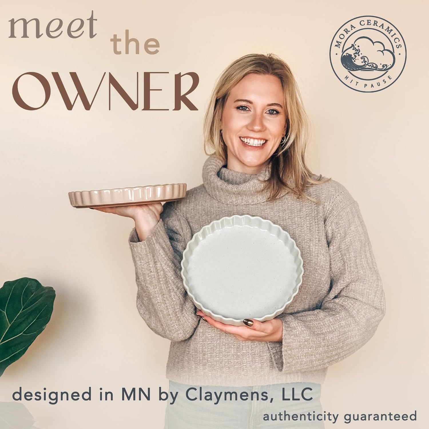 Mora Ceramic Tart Pan, 9.5 Inch Large Porcelain Baking Dish for Tarts, Quiche, Pie, Flan etc. Fluted Ruffled Edge, Oven, Microwave, Freezer, and Dishwasher safe - Great Gift For Bakers - Chai