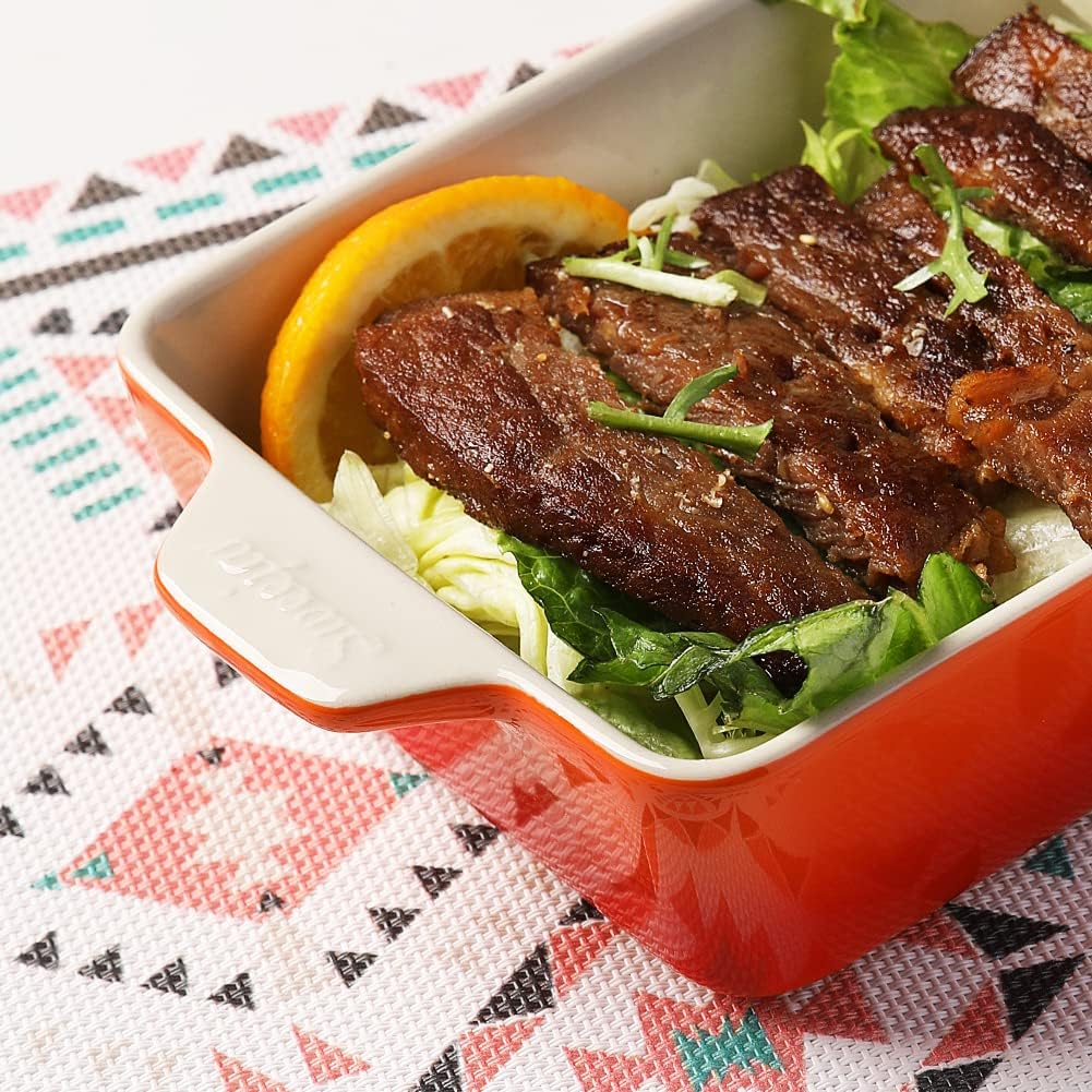 - 【Easy to Clean】Thick baking dish, heated evenly, with good insulation effect. Smooth glaze, easy to clean, you can wash it with soap or hot water, and dishwasher safe.
