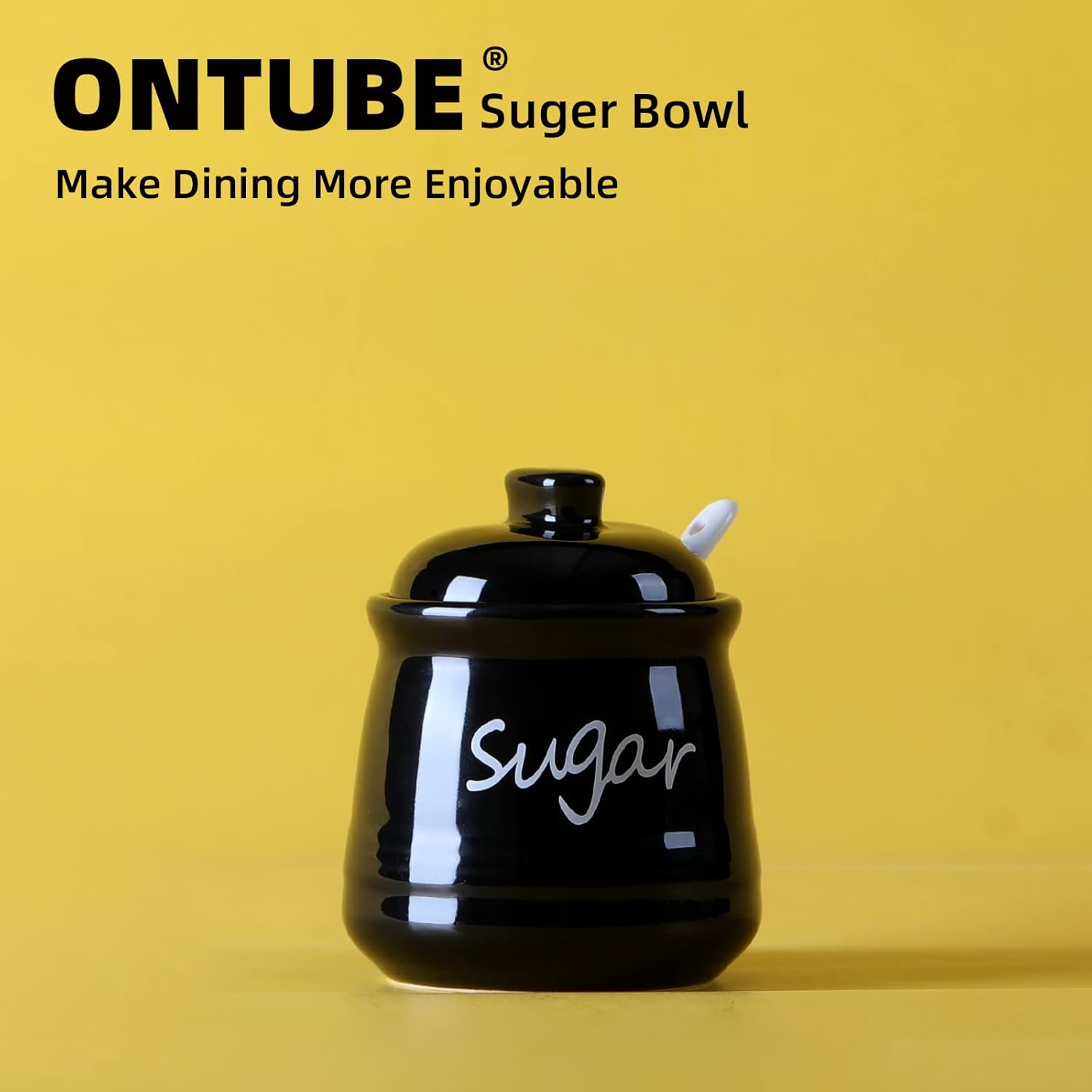 ONTUBE Ceramic Sugar Bowl with Lid and Spoon 12oz (Black)