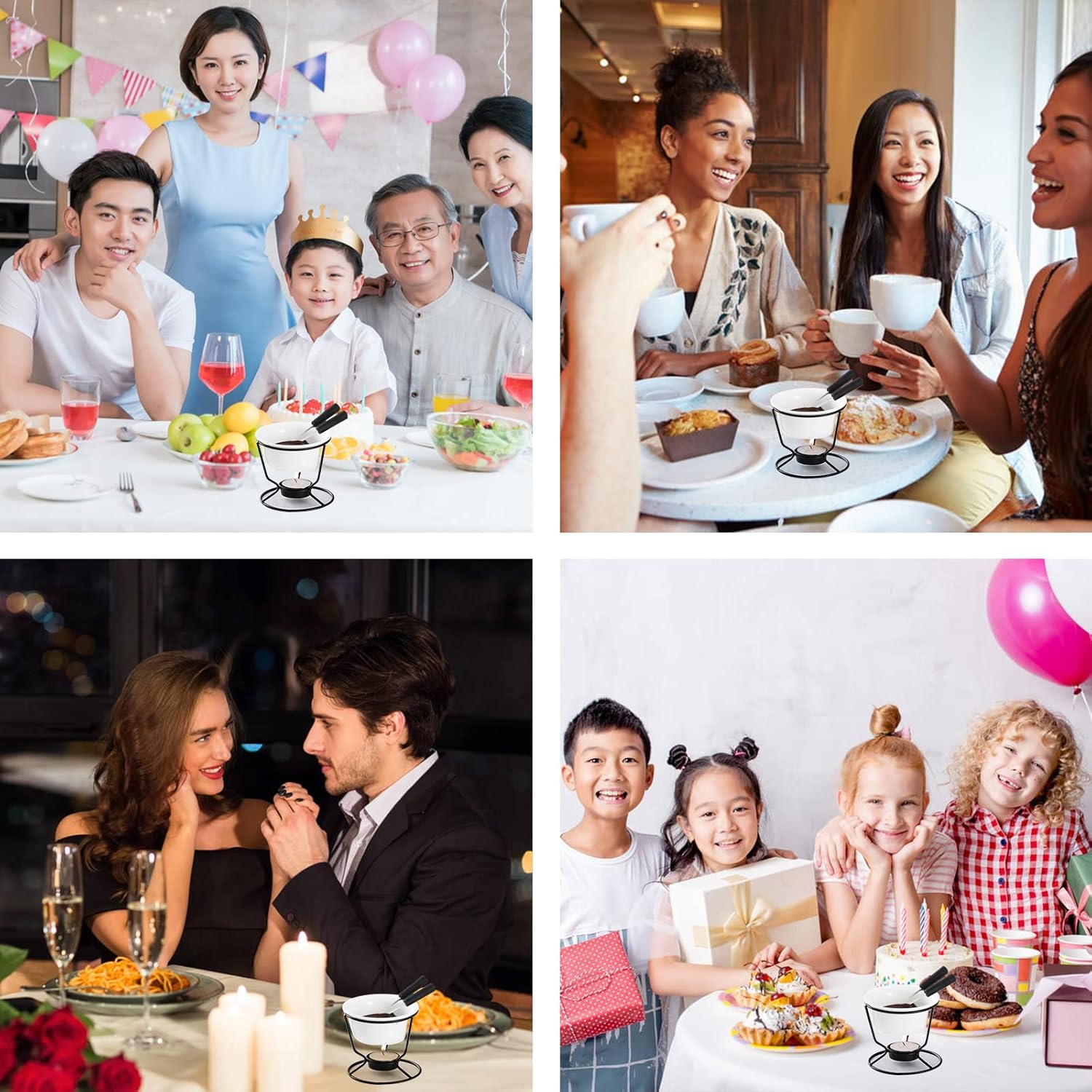 - 5oz Individual Sweet Bowl with Decent Size: Luvan 4Pcs Fondue Pot Set with 20 Tea light candles for free. Each bowl measure 3.87inch top diameter and 1.57inch height,with 5oz(150ml) large capacity. The metal stand is 3.39inch height.Stackable design did not waste space in the cupboard.