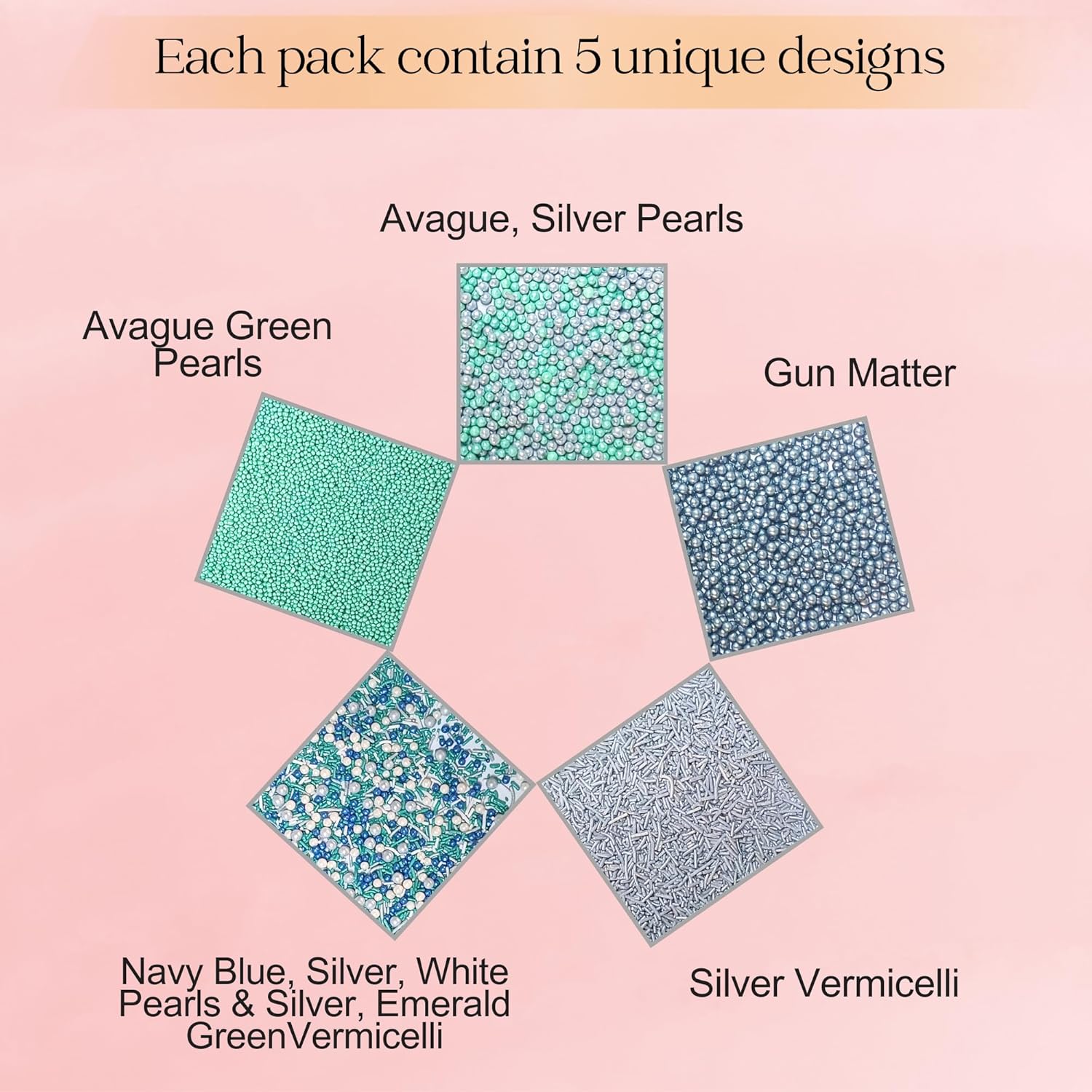 Confect Edible Sprinkles | Navy Blue & Teal Dragees, Green & White Jimmies, Bright Blue Sparkling Sugar | Baking Toppings & Decorations | Sprinkle for Cake & Cupcake Decorating – Vegan, Gluten-Free, Nut-Free, Soy-Free, Dairy-Free, Palm Oil-Free-5 Oz