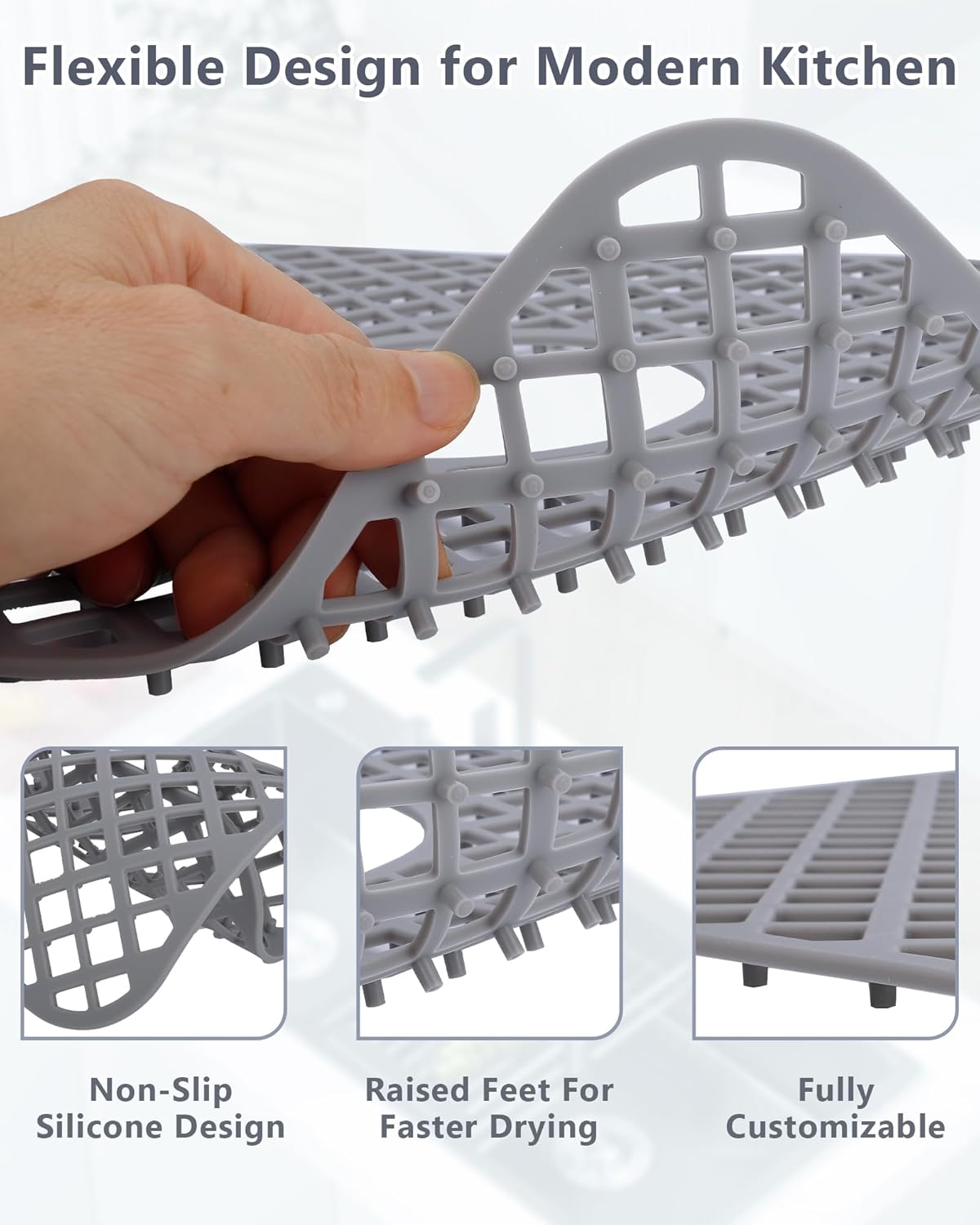 - Stylish Addition to Any Kitchen - Beyond functionality, this silicone sink protector enhances your kitchen's aesthetic. The lozenge pattern and neutral color options complement any decor style. Slim profile lays flat without curling edges. The textured surface adds visual interest while promoting airflow. This sleek protector maintains a clean, professional look. Practical protection meets contemporary design for discerning homeowners.