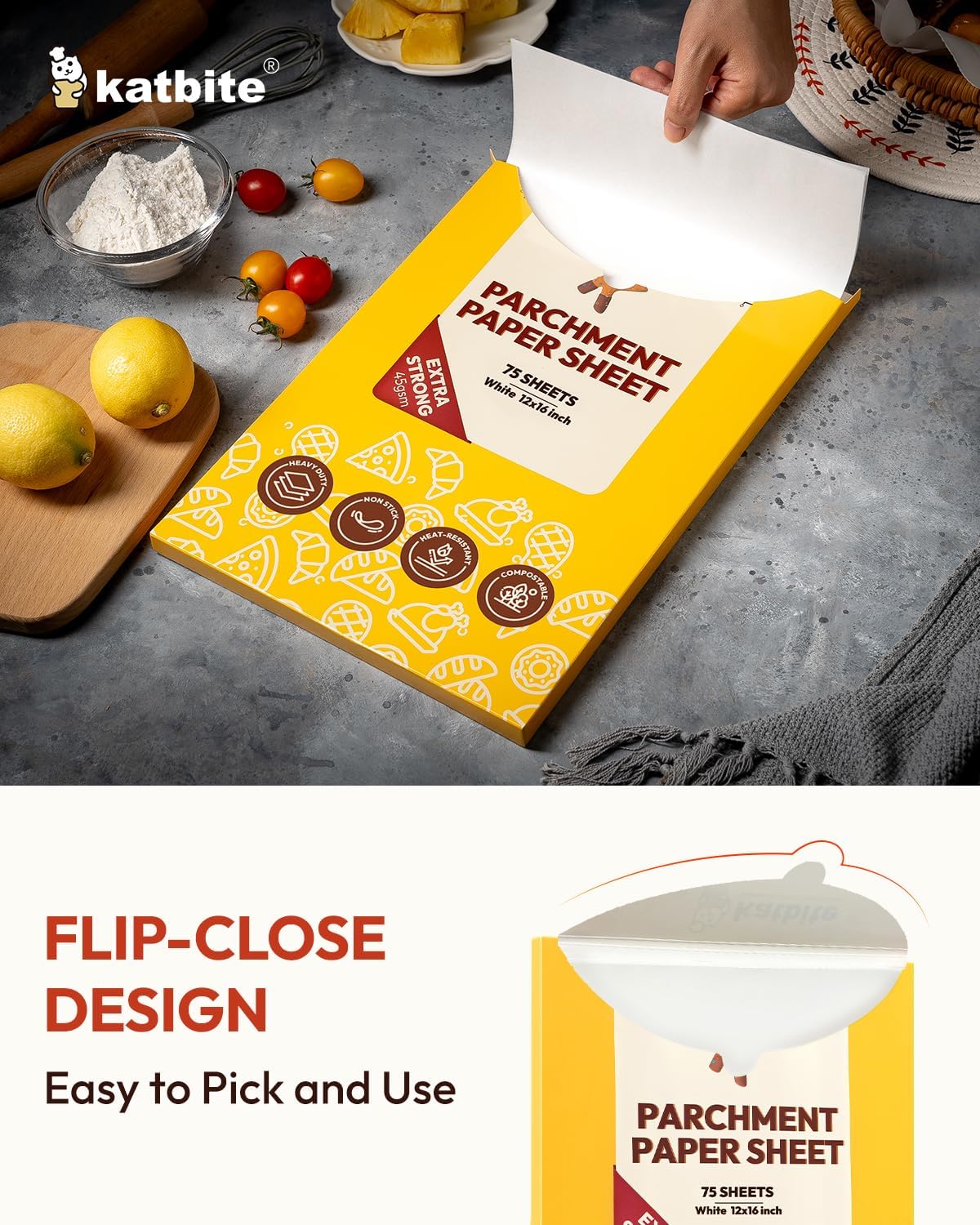 ![Katbite 75Pcs White Parchment Paper Sheets 12x16IN, Pre-Cut Heavy Duty Parchment Baking Paper, Non-Stick Half Sheet White Baking Parchment Paper for Air Fryer, Baking Cookie Pans[Advanced Series]](http://kichen-store.com/cdn/shop/files/81J45q3wk2L._AC_SL1500.jpg?v=1761706334&width=1445)