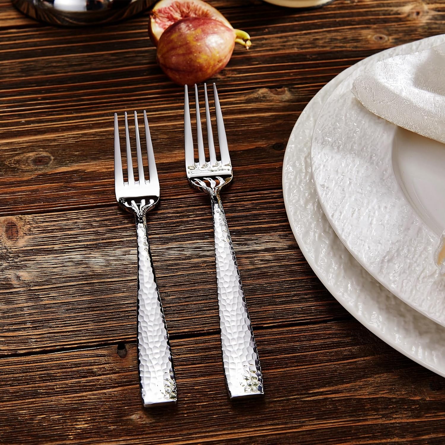 - 💎Whether you're hosting a dinner party, celebrating a special occasion, or simply enjoying a family meal, our premium hammered silverware set adds a touch of elegance to any table setting. Impress your guests with its eye-catching design and exceptional quality.