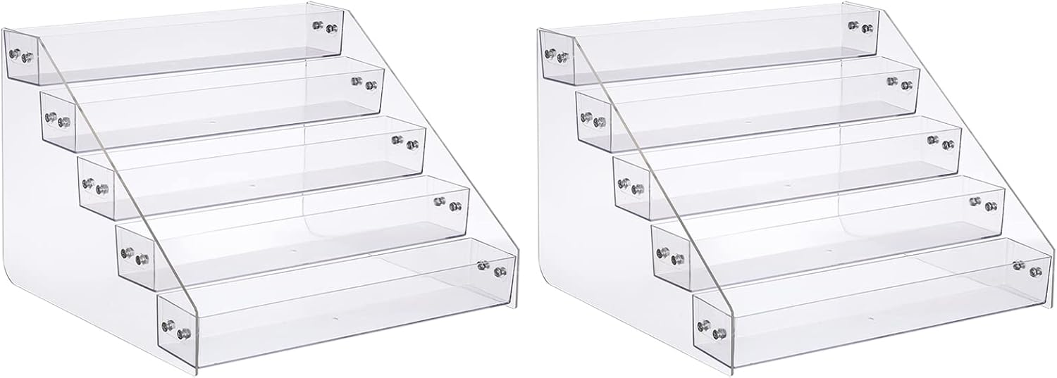 Acrylic Spice Rack, Tiered Spice Rack Shelf Seasoning Organizer for Countertop, Cabinet, Pantry, Kitchen Storage - 5 Tier, 2PCS