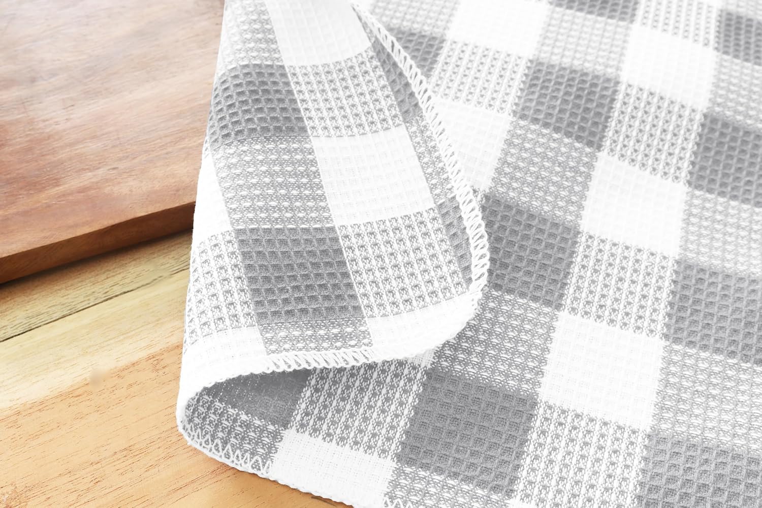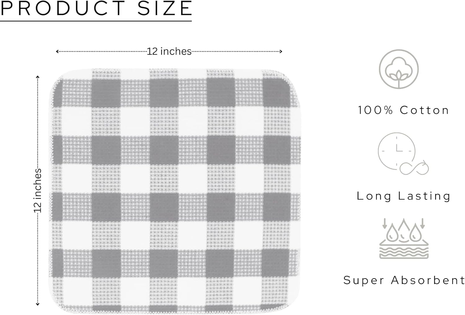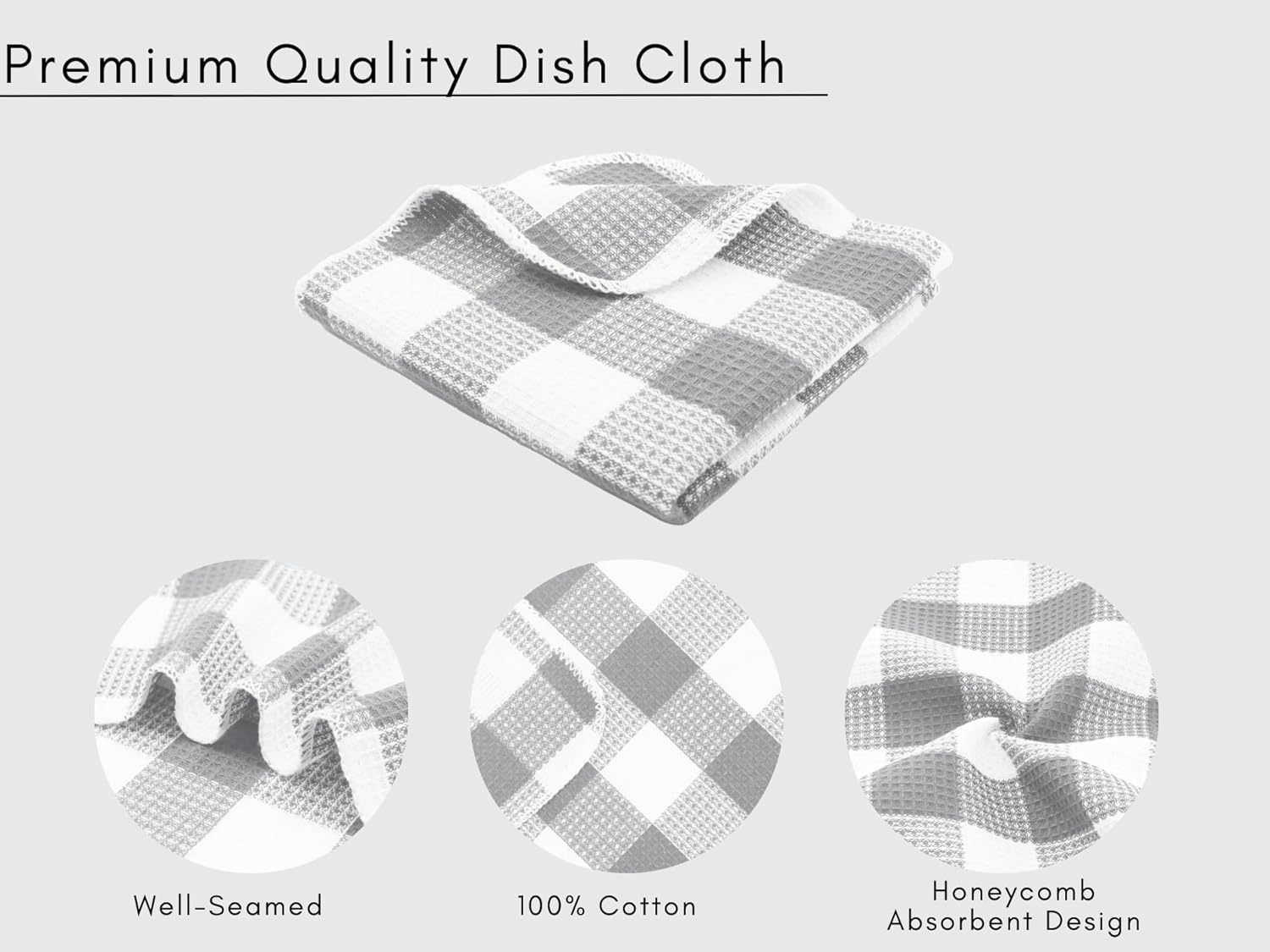 PurpleEssences Waffle Weave Plaid Dish Cloths, 100% Cotton - 12 x 12 Inches, Ultra Soft Absorbent Quick Drying Dish Towels Buffalo Check Dish Rags for Kitchen, 8 Pack - Spring Summer - Grey & White