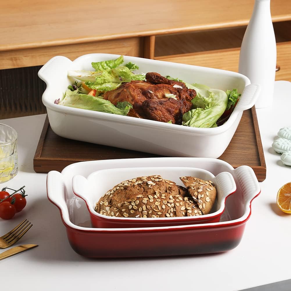 Sweejar Baking Pans Set, Ceramic 9x13 Baking Dish with Handle, Rectangular Casserole Dishes for Oven, Bakeware Sets of 3, Durable Lasagna Pan Deep for Kitchen, Banquet, Wedding Gift(Gradient Red)