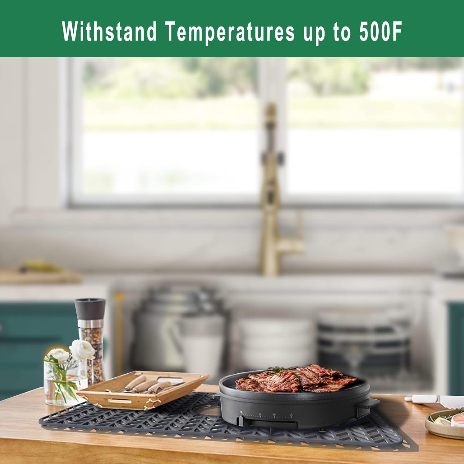 - 【Easy to Use】Our kitchen sink mats and protectors can handle up to 500f, heat-safe silicone for placing pots and pans in sink directly from stove, the superior finish looks sleek, modern and stylish in your kitchen sink.