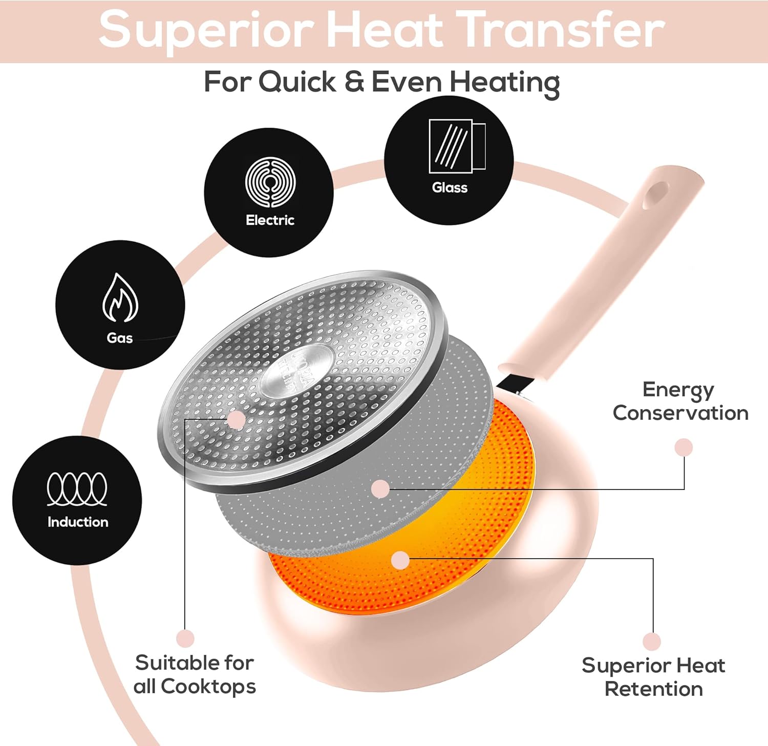 - HARBORING A CULINARY HAVEN – Explore new recipes and savor the delectable aroma, with the impeccably fabricated, nonstick even-heat distributed frying pans, ideal for all types of cook-tops, be it electric or ceramic.
