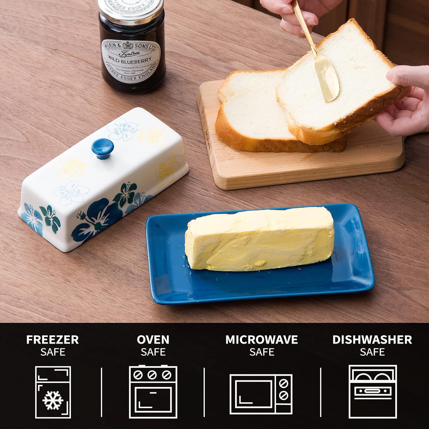 Butter Dish Ceramic Butter Keeper Butter Dish with Lid, Butter Container, Blue